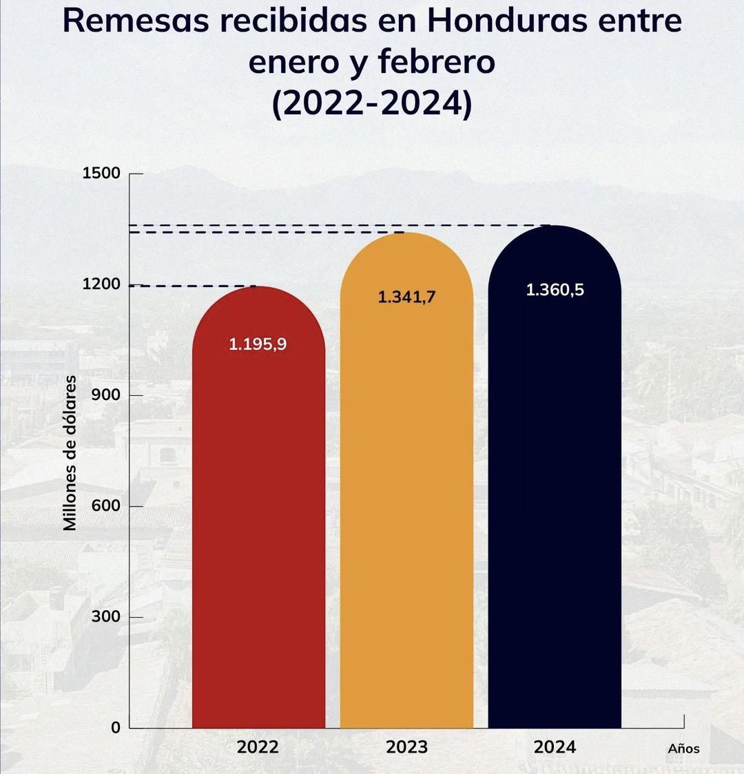 Remittances received in Honduras between January and February 2022 and 2024.