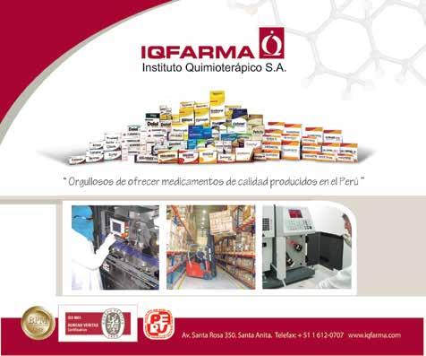 En el área de la salud, fabricando, comercializando y distribuyendo productos farmacéuticos, nos encontramos con IQFarma empresa peruana gerenciada por Guiliana Peirano Castilla y que nos habla de su producto bandera, “Biobroncol, es el primer antibiótico de todas las clases de Perú, tanto de las cefalosporinas, sulfas o penicilinas. Terminamos el estudio clínico, el cual ha sido sumamente favorable y se va a realizar una publicación internacional de ese producto, del cual estamos muy orgullosos.”