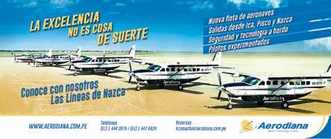 Lo que es incuestionable en el desarrollo turístico, es contar con empresas que puedan ofrecer al viajero un buen sistema de comunicaciones y transportes a los lugares donde se hallan los tesoros arqueológicos peruanos, uno de los atractivos más buscados por los visitantes. En este campo ponemos como ejemplo a Aerodiana, línea aérea peruana con más de 10 años en el mercado y que decidió apostar por el mercado turístico, volando a las líneas de Nazca y convirtiéndose en líderes del mercado, ofreciendo vuelos desde Pisco (95 minutos) y desde Nazca (30 minutos). Las famosas líneas de Nazca, son misteriosos dibujos que solo se pueden apreciar desde el aire y que después de Machu Picchu es uno de los más demandados atractivos turísticos del país. El 70% de la demanda son turistas de los países orientales aunque también hay europeos y americanos.