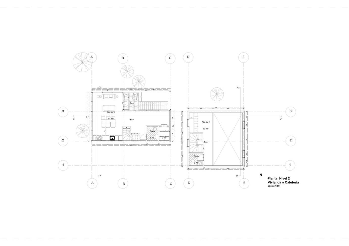 Hierarchize and Safeguard the green areas, through the elevation of the home, generating a space and facade different from the cafeteria, occupying different levelsandprotectingthegreenland