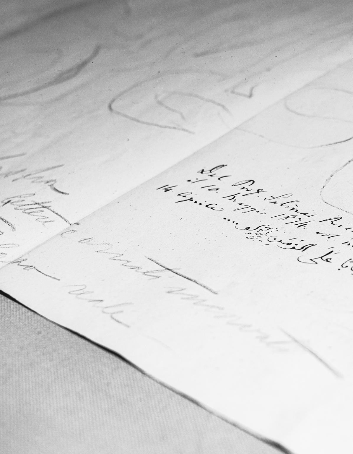 Salinas non parla nella sua lettera del disegno esposto in mostra, ma di un “pezzetto di appunti” allegato alla stessa e dell’esistenza di un lucido “rozzissimo” realizzato sul frammento di iscrizione rinvenuta, per consentire, continua Salinas, di averne “un’idea approssimativa” alla stessa maniera di come si era fatto per l’altra lastra ritrovata nel sotterraneo della Cappella Palatina, che ricordiamo fu donata nel 1863 al Real Museo da Re Vittorio Emanuele II. Infine, manifesta l’intenzione che le due lastre di marmo si potessero riunire al Museo, come chiesto dalla Commissione Antichità al Ministero di Istruzione Pubblica e al Ministro della Real Casa, rivendicando con orgoglio il diritto di avere nel Museo di Palermo una sala araba7. Amari argomenta il tema del ritrovamento delle iscrizioni nel Palazzo Reale di Palermo in Storia dei Musulmani di Sicilia, cui si riferisce il rimando bibliografico del disegno8