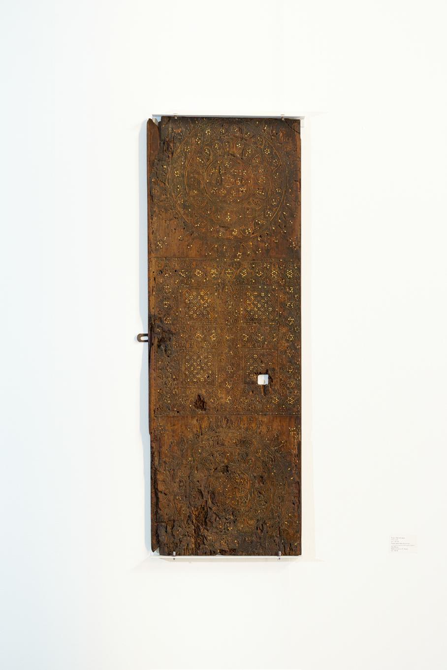 judgements’ discovered in 1871 during the course of works conducted at Santa Maria dell’Ammiraglio by ‘two valiant young Sicilians’, both members of the Antiquities and Fine Arts Commission: the engineer Giuseppe Patricolo and the archaeology professor Antonino Salinas. This sensational discovery confirmed Michele Amari’s conjectures: at the base of the Martorana’s cupola, entirely encrusted with Greek decoration, ‘there winds beneath the mosaic an Arabic inscription, painted in white upon pine-wood panels, each of which is set neat in its surrounds with two robust nails’. Patricolo painstakingly traced the inscription painted on the wooden panels, each approximately a metre in length, some of which had been replaced over the course of the centuries and painted only with ‘crude scrawls’ (Salinas). The tracings of the 16 panels were reproduced on smaller panels, some of which served as showpieces in one of the three rooms originally dedicated to ‘Arabian objects’ in the Nation Museum of Palermo under Salinas’ direction. In Salinas’ own 1882 Guida Popolare (‘Public Guide’), he cited Amari’s translation: the Sanctus, the Hosanna and the Gloria in Excelsis; Christian morning prayers, which – written in Arabic and hidden beneath dazzling Byzantine mosaics – formed, in the eyes of their learned discoverers, ‘one of the most notable of all documents of this mixing of languages and faiths that reigned throughout the Sicily of the Norman epoch’ (Salinas). Philological interests prevailed and little or nothing was written of the fate of the original articles, but rather of the tracings transferred to smaller panels. These panels were duly painted in red and elegantly finished in gold, perhaps by Giarrizzo, then a young painter also active in the field of visual scholarship and close to Salinas.