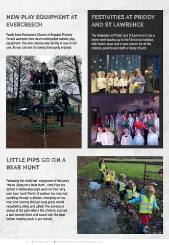LITTLE PIPS GO ON A BEAR HUNT Following the childrens' enjoyment of the story 'We're Going on a Bear Hunt', Little Pips pre school in Baltonsborough went on their very own bear hunt! Plenty of outdoor fun was had paddling through a stream, stomping across mud and running through long grass whilst negotiating stiles and gates! The adventure ended at the park where the children enjoyed a well earned drink and snack with the bear before heading back to pre school.
