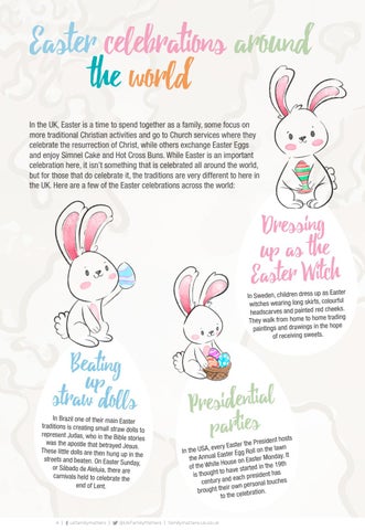 Easter celebrations around the world In the UK, Easter is a time to spend together as a family, some focus on more traditional Christian activities and go to Church services where they celebrate the resurrection of Christ, while others exchange Easter Eggs and enjoy Simnel Cake and Hot Cross Buns. While Easter is an important celebration here, it isn’t something that is celebrated all around the world, but for those that do celebrate it, the traditions are very different to here in the UK. Here are a few of the Easter celebrations across the world: