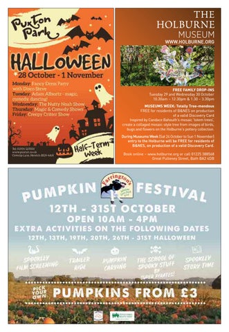 FREE FAMILY DROP-INS Tuesday 29 and Wednesday 30 October 10.30am – 12.30pm & 1.30 – 3.30pm MUSEUMS WEEK: Totally Tree-mendous FREE for residents of B&NES on production of a valid Discovery Card Inspired by Candace Bahouth’s mosaic ‘totem trees’, create a collaged mosaic-style tree from images of birds, bugs and flowers on the Holburne’s pottery collection. During Museums Week (Sat 24 October to Sun 1 November) entry to the Holburne will be FREE for residents of B&NES, on production of a valid Discovery Card. Book online – www.holburne.org or call 01225 388568 Great Pulteney Street, Bath BA2 4DB