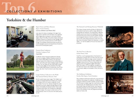 Yorkshire & the Humber Ripon Prison and Police Museum Ripon, North Yorkshire Current exhibition until March 2021 Learn about the history of policing in the region from Anglo Saxon methods to the formation of an organised force. Imagine life as a prisoner in the brutal Victorian regime. One of the cells in the prison houses a temporary exhibition Prisoners on Prisoners by Faye Claridge which explores the lives of female prisoners at HMP Askham Grange. The exhibition features portraits the artist has created alongside accounts and experiences of prisoner’s lives and the criminal justice system.