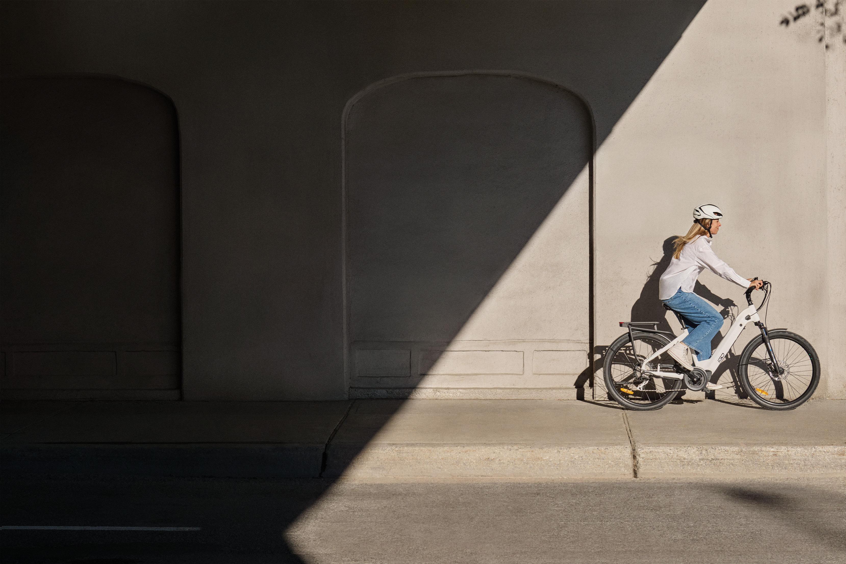 FRAME Hydroformed Alloy, 27.5 Step Through ERGOFIT frame, internal cable routing head tube ported, fender mounts, Electronic Access Port, key lock secured internal downtube battery compartment (removable battery), accessory ready rear cargo rack
