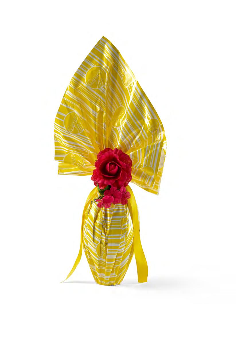 Uovo cioccolato al latte incarto giallo con decoro floreale “Mafucci” (Umbria)