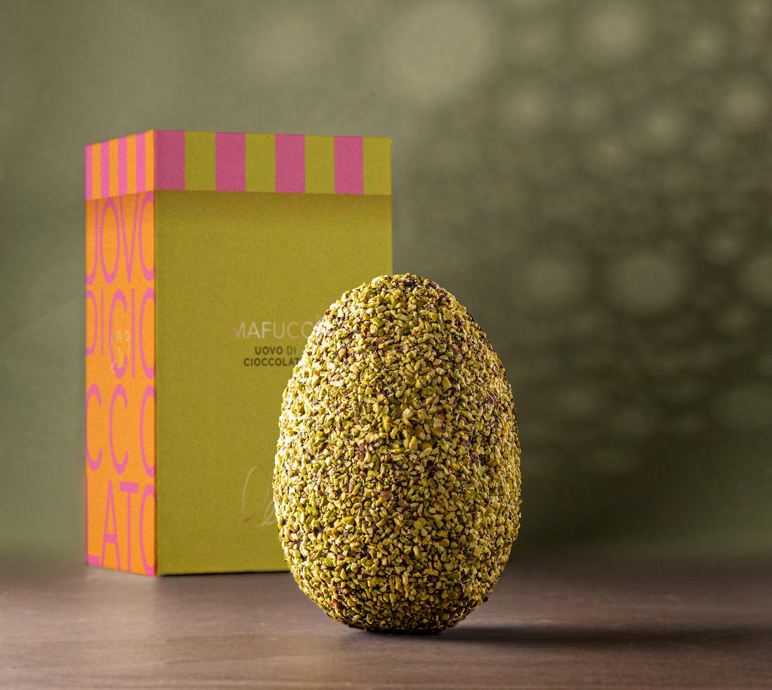 Uovo di cioccolato fondente con copertura di granella di pistacchio “Mafucci” in astuccio ultra resistente (Umbria)