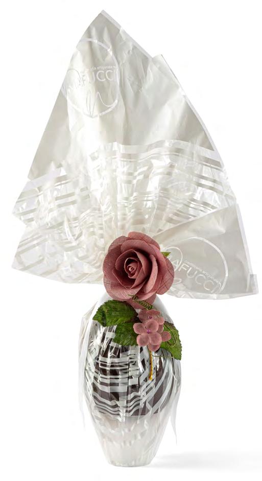Uovo cioccolato fondente incarto bianco con decoro floreale “Mafucci” (Umbria)