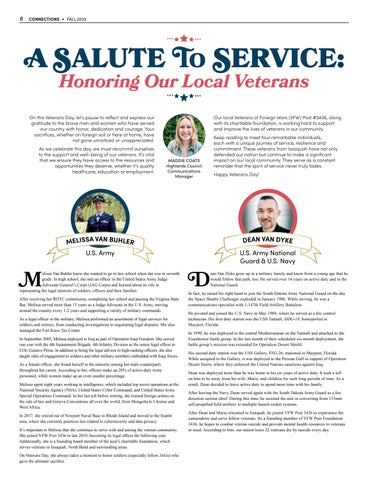 In honor of Veterans Day, join us in thanking the brave men and women who served our country with courage and sacrifice. On page 9, meet four local veterans and read about each of their unique experiences in the military as well as their continued efforts to support veterans in our community.