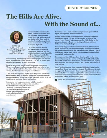 The Hills Are Alive, With the Sound of… BETTY LEE Highlands Council Community Engagement Coordinator & Park Drive Resident