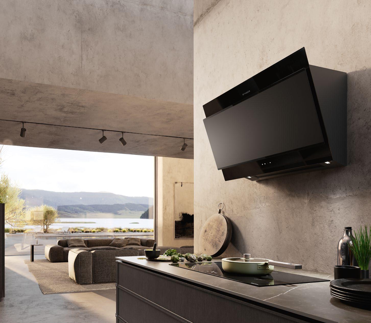 The new True Double Black vertical wall hood from Faber offers a powerful cooking extraction rate of up to 790 m3/h with an A+ energy rating.