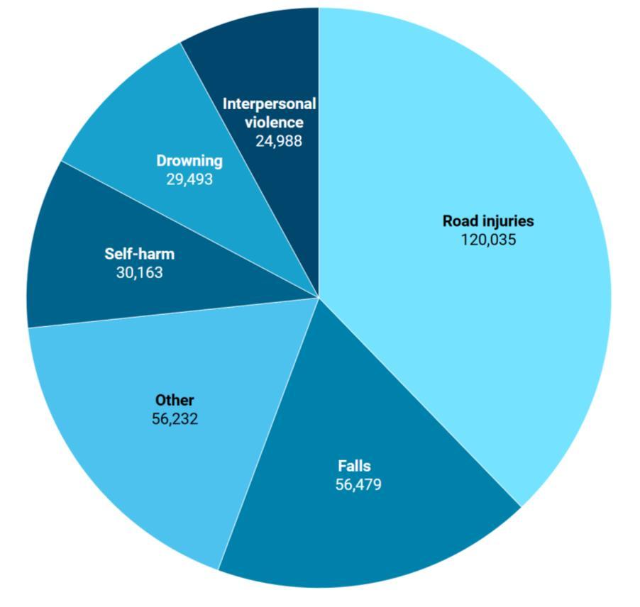 Road injuries, falls, drowning, interpersonal violence, and self-harm were the primary causes of injury in ASEAN.6