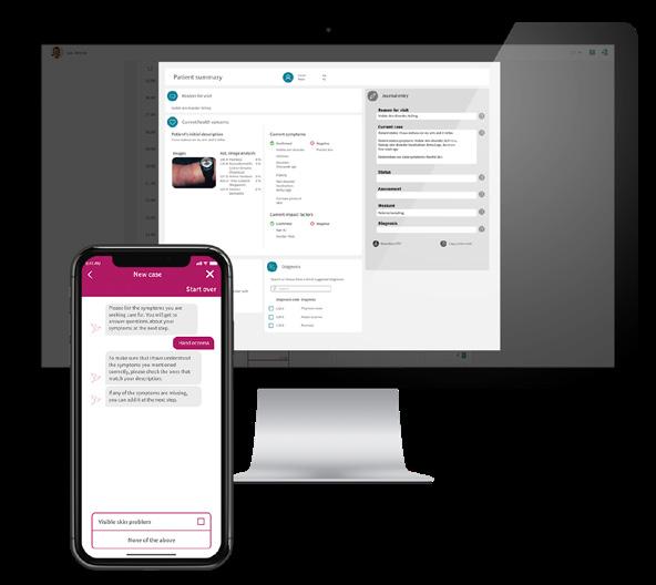 you increase the throughput of patients while optimising patient outcomes. Red Robin, the AI tool for medical history and triage, guides the patient to the right place in the digi-physical pathway and supports healthcare professionals in medical assessments in the front line of care.