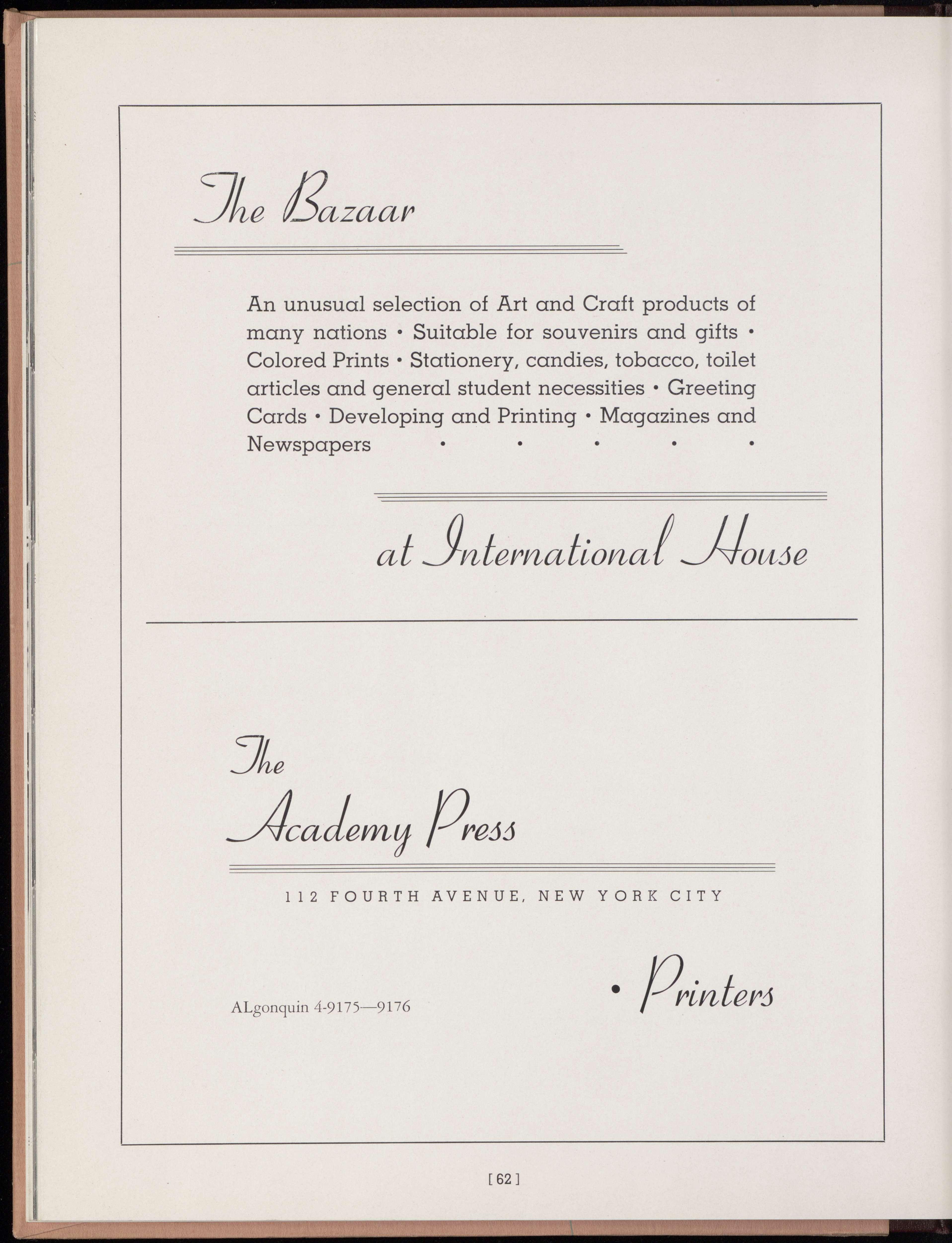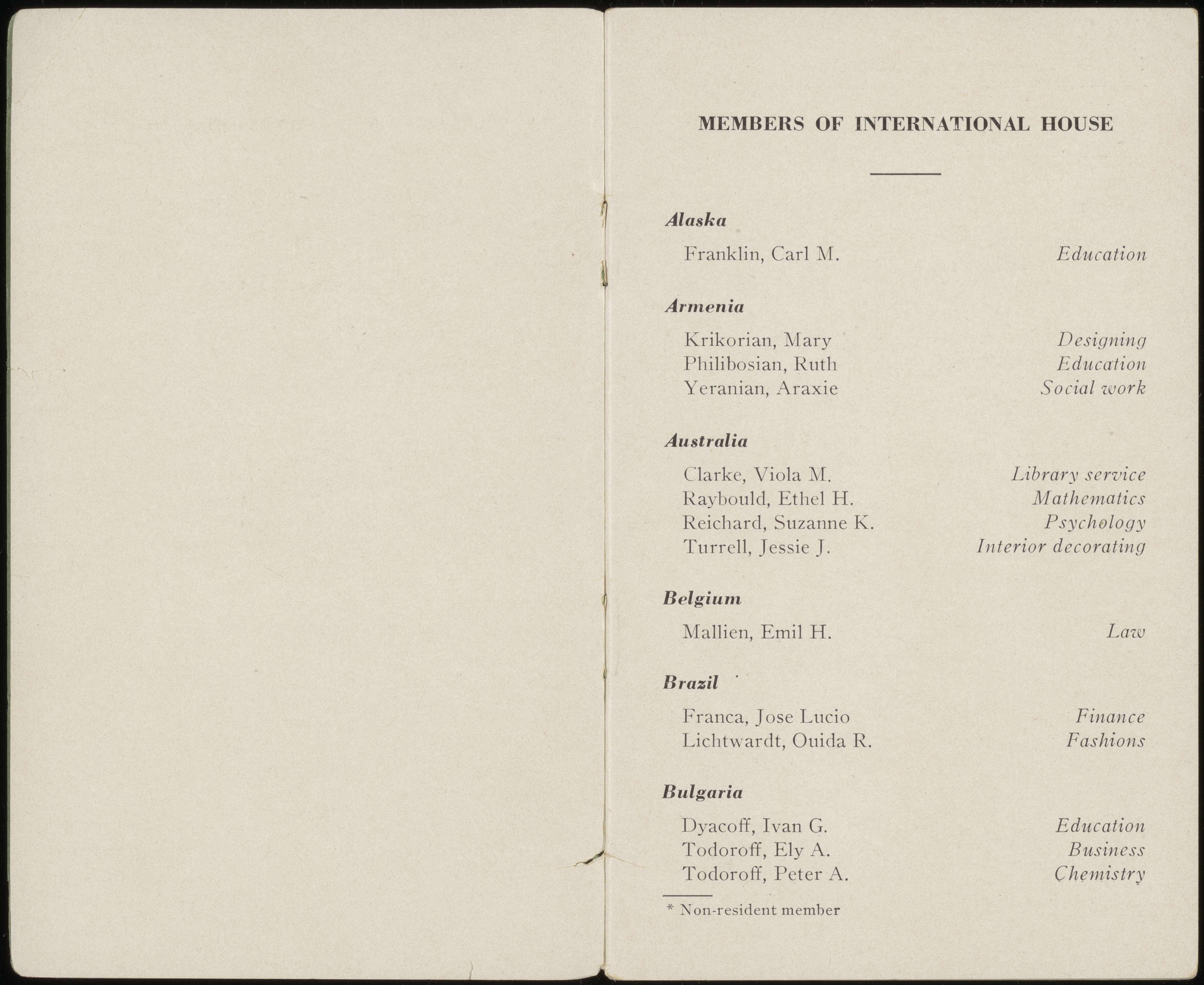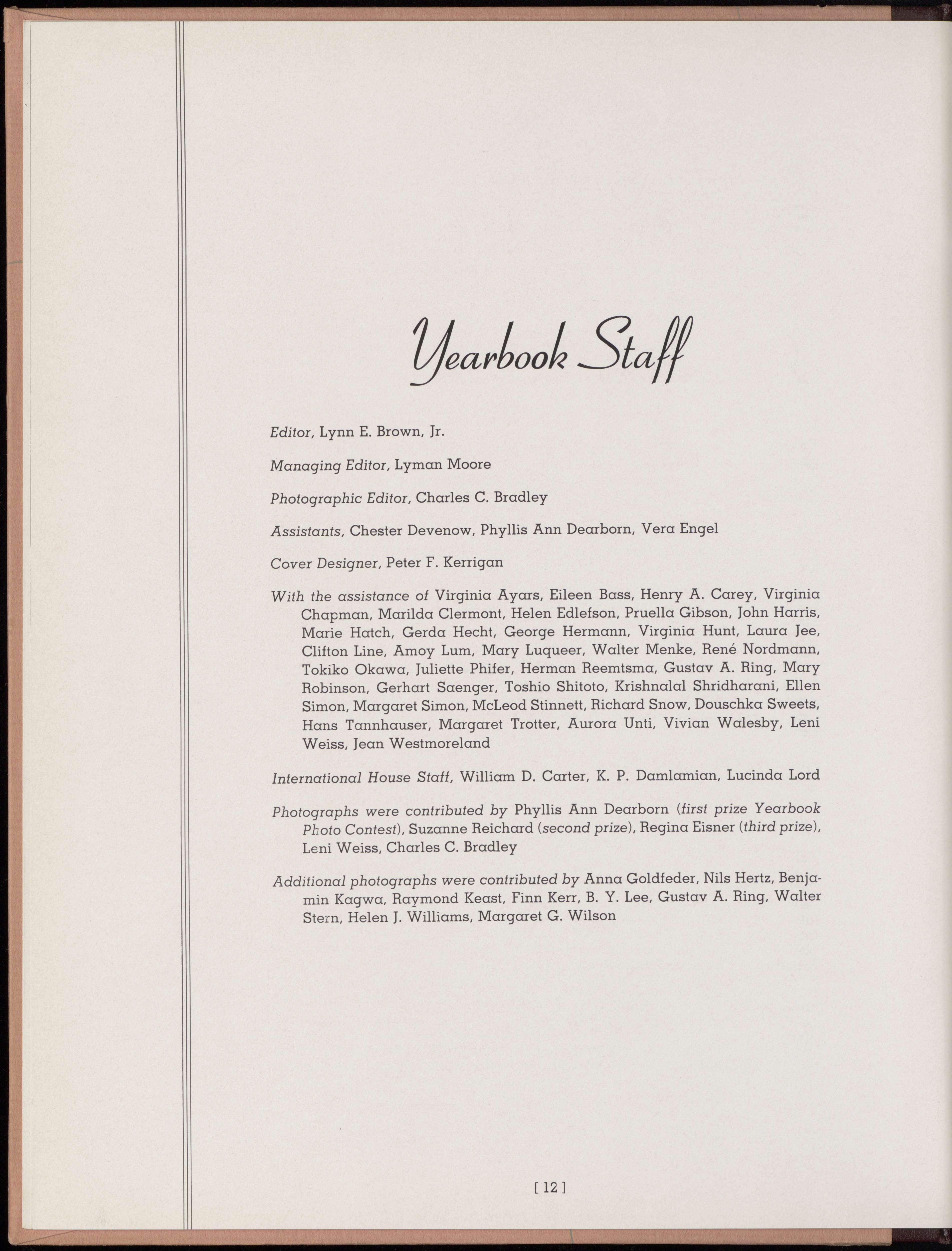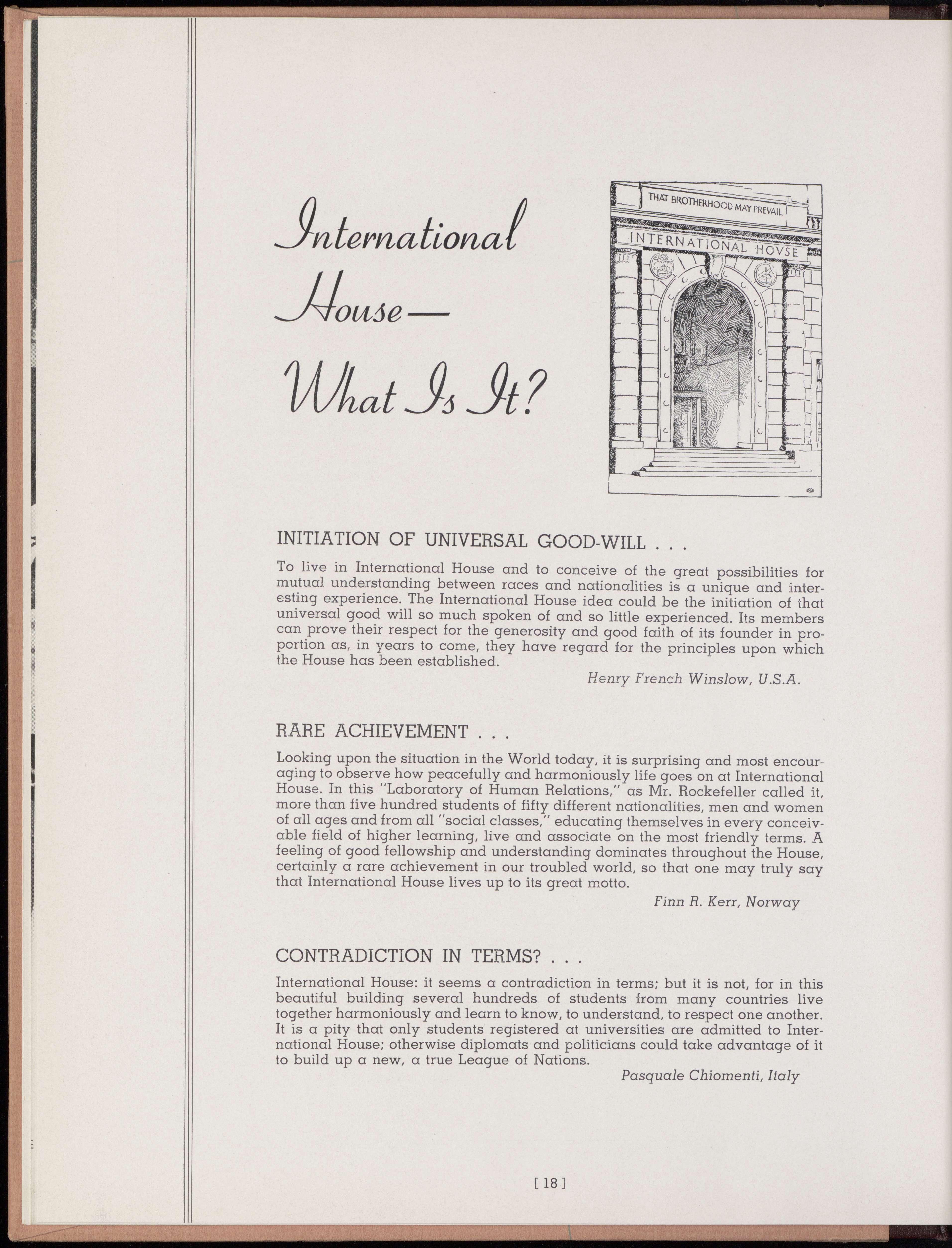 Those of us who live from day to day in International House are sometimes not altogether conscious of the unique experience which we enjoy living in a community of this type. A Yearbook is memento of a year in the House, but such a year is more than a thing in itself. It has a lasting influence in our future lives.