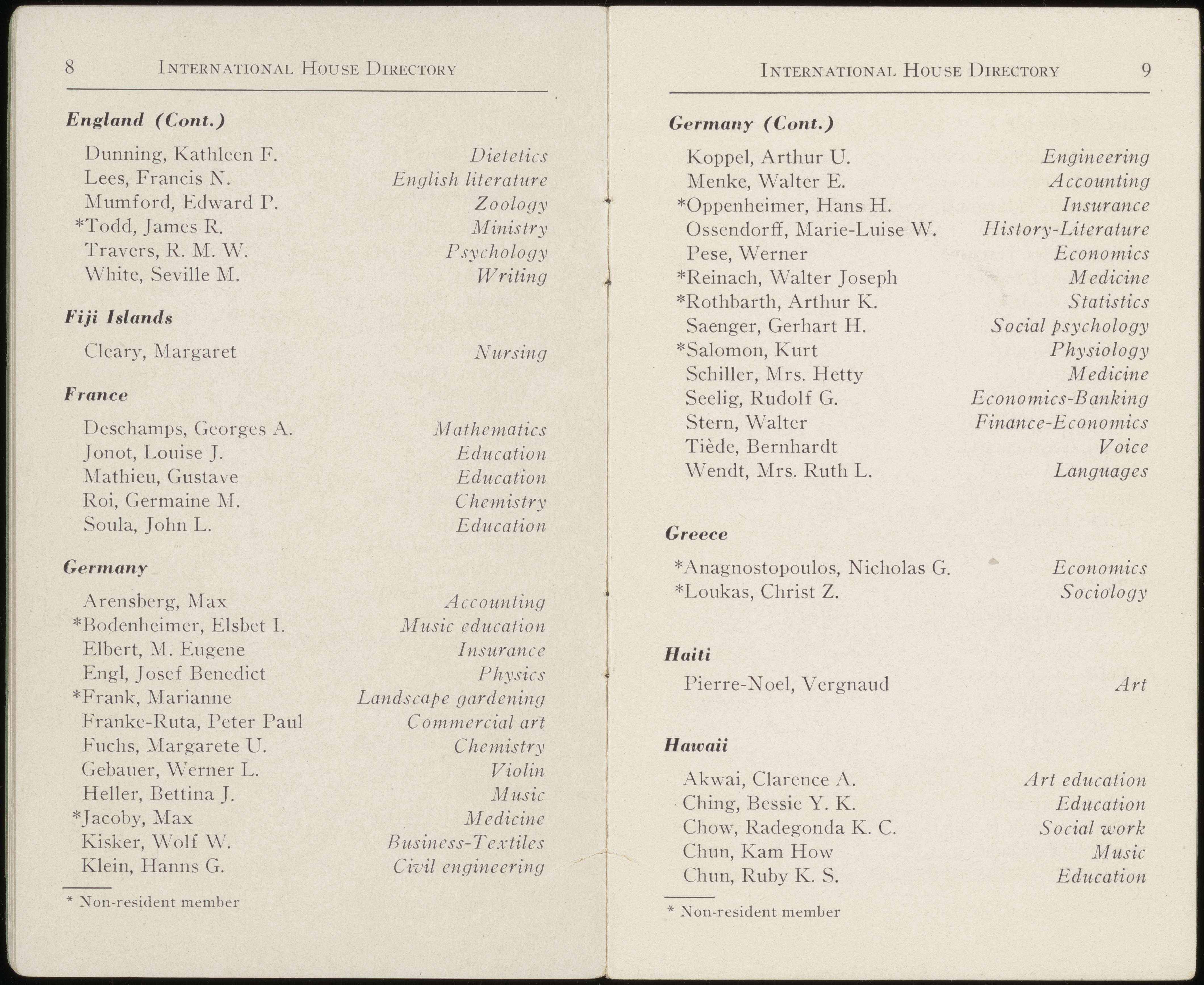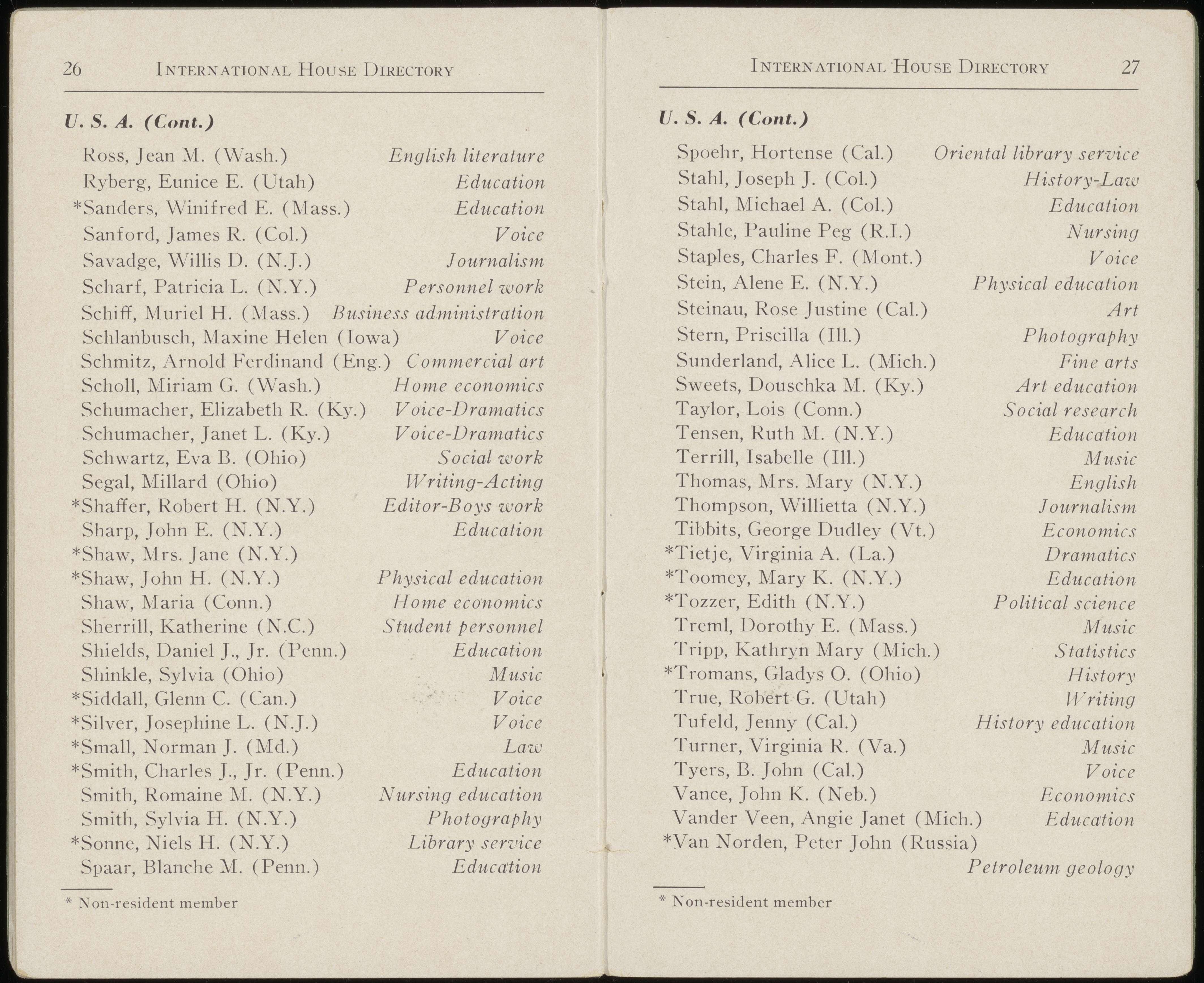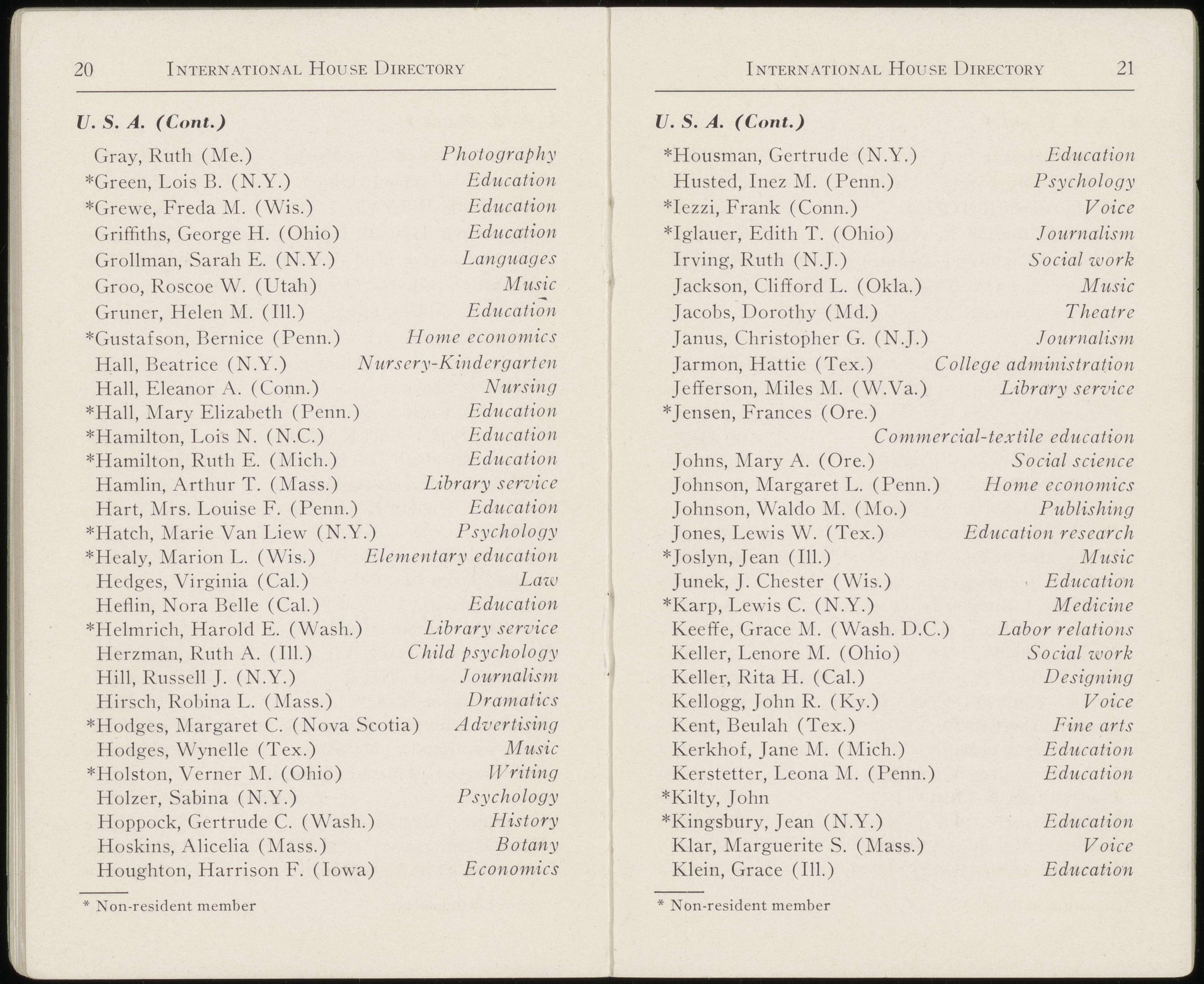 With the assistance of Virginia Ayars, Eileen Bass, Henry A. Carey, Virginia Chapman, Marilda Clermont, Helen Edlefson, Pruella Gibson, John Harris, Marie Hatch, Gerda Hecht, George Hermann, Virginia Hunt, Laura Jee, Clifton Line, Amoy Lum, Mary Luqueer, Walter Menke, René Nordmann, Tokiko Okawa, Juliette Phifer, Herman Reemtsma, Gustav A. Ring, Mary Robinson, Gerhart Saenger, Toshio Shitoto, Krishnalal Shridharani, Ellen Simon, Margaret Simon, McLeod Stinnett, Richard Snow, Douschka Sweets, Hans Tannhauser, Margaret Trotter, Aurora Unti, Vivian Walesby, Leni Weiss, Jean Westmoreland