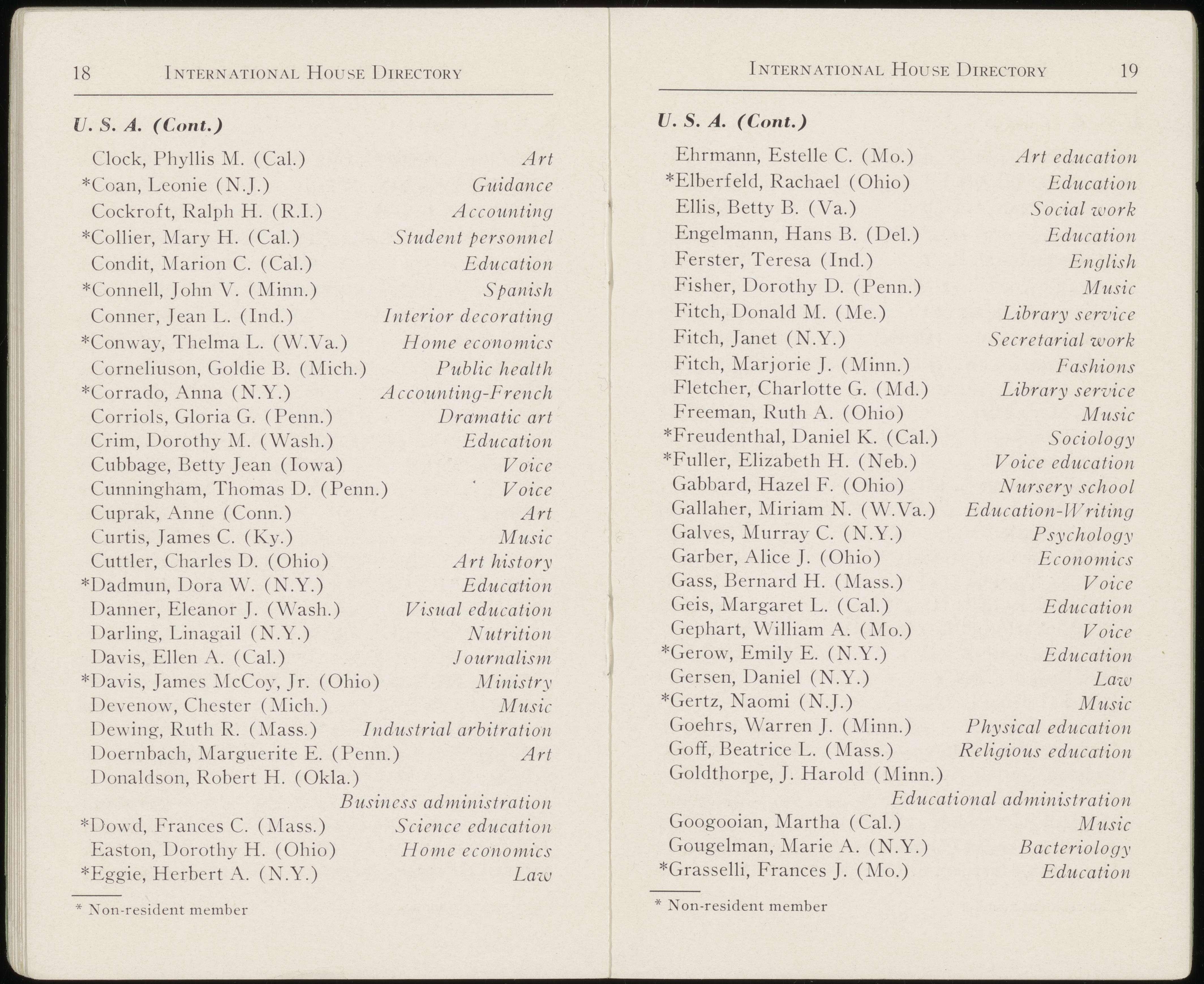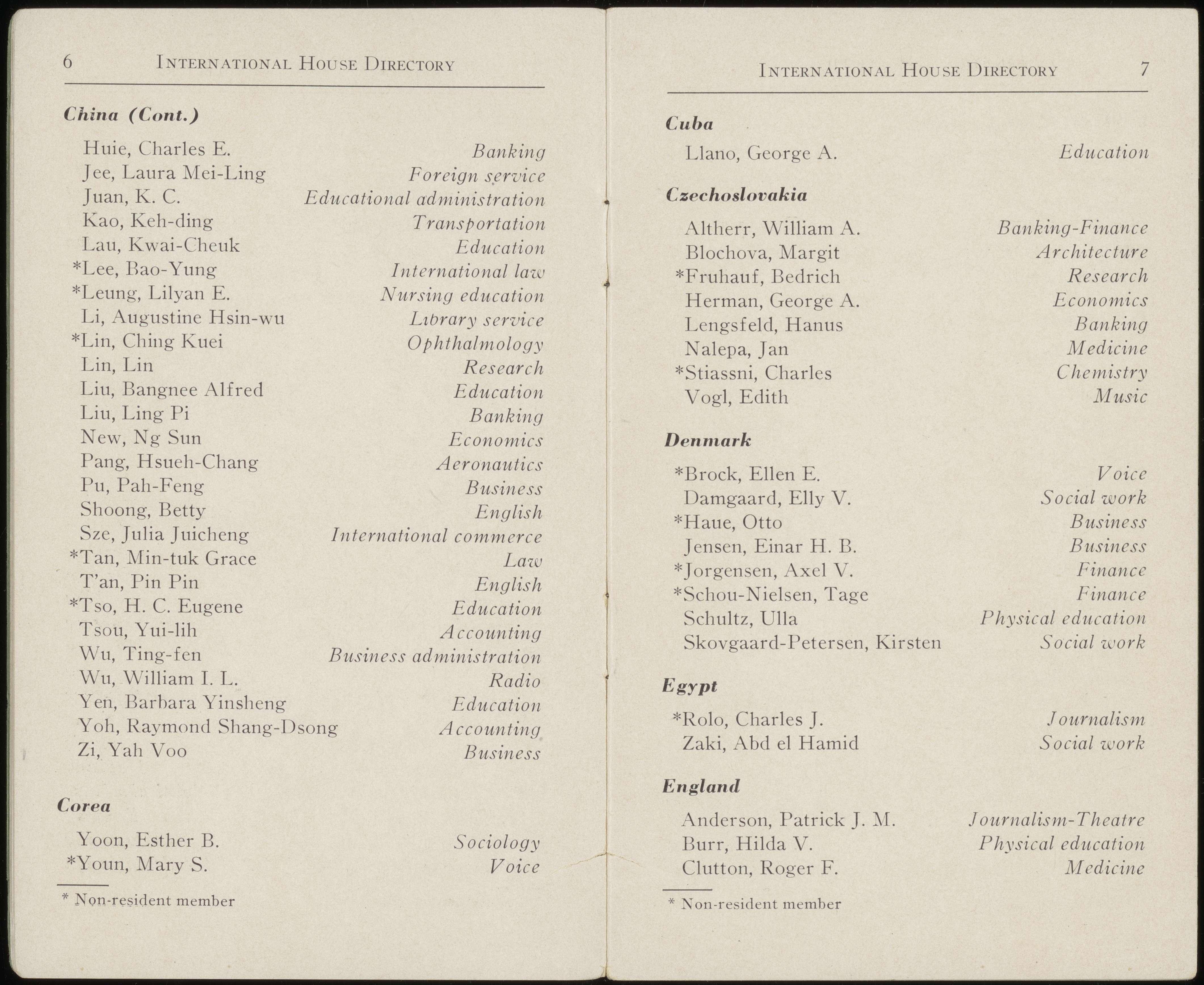 The past has seen its share of discriminations. How well I remember the parting speech of a gentleman from South Africa, musician, entertainer of House membership, well liked by members of the American majority and its European brethren. His farewell remarks were a bit of a surprise to all of us; from it we learned of the many discriminations, unconscious and conscious, which members of different racial groups sometimes experience in International House. Surely such unfortunate happenings were not then the rule. Today they are even less tolerated. In the future they must never occur.