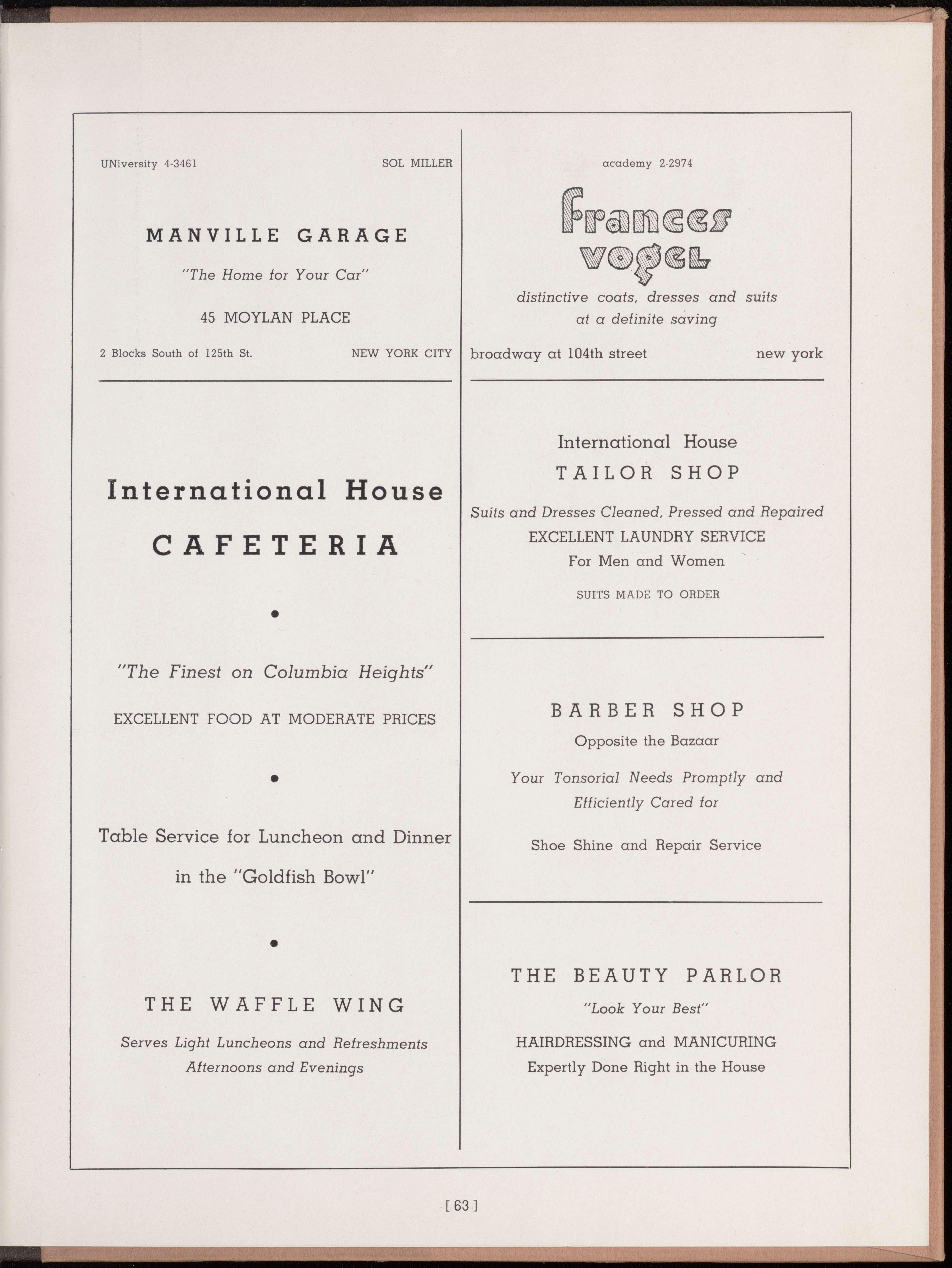 Our educational policy more and more reflects the variety of people living under our roof. In the last year the program has become very enlightening, if not truly liberal. Perhaps some day the morale of House members will be so high that we will be able to meet any time for full free discussion of every side of the world story. The greater part of the road in that direction seems to have been already traveled.