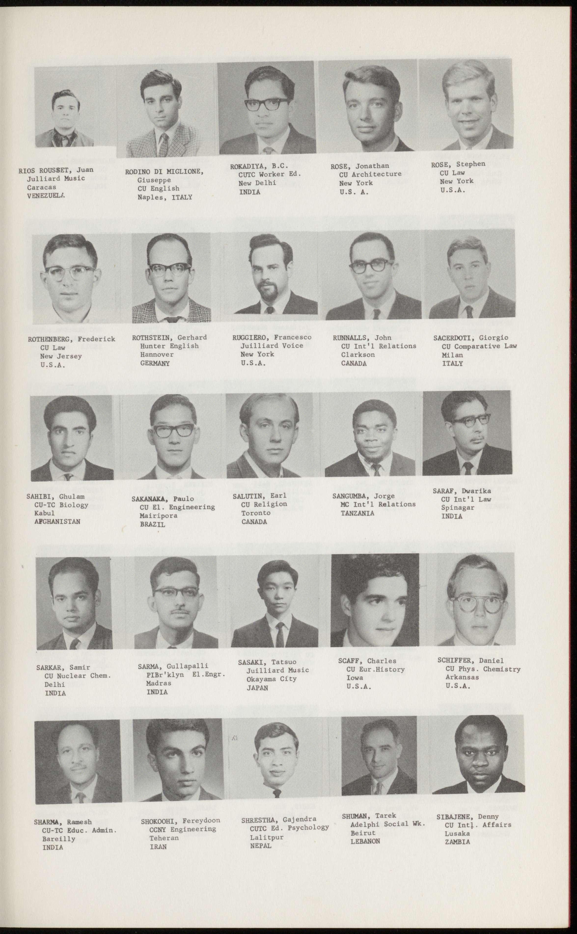 SCHWARZENBACH, ROBERT § gyqmIzU, HIDEYASU SIDER, GABRIEL SMREKAR, ALBERT SPIRO, JOHN CU Bus. Admin. Suse. Admin. NYU History Juilliard Piano Juilliard Voice New York Tokyo California Ohio Jerusalem U.S.A. JAPAN mh U.S.A. ISRAEL