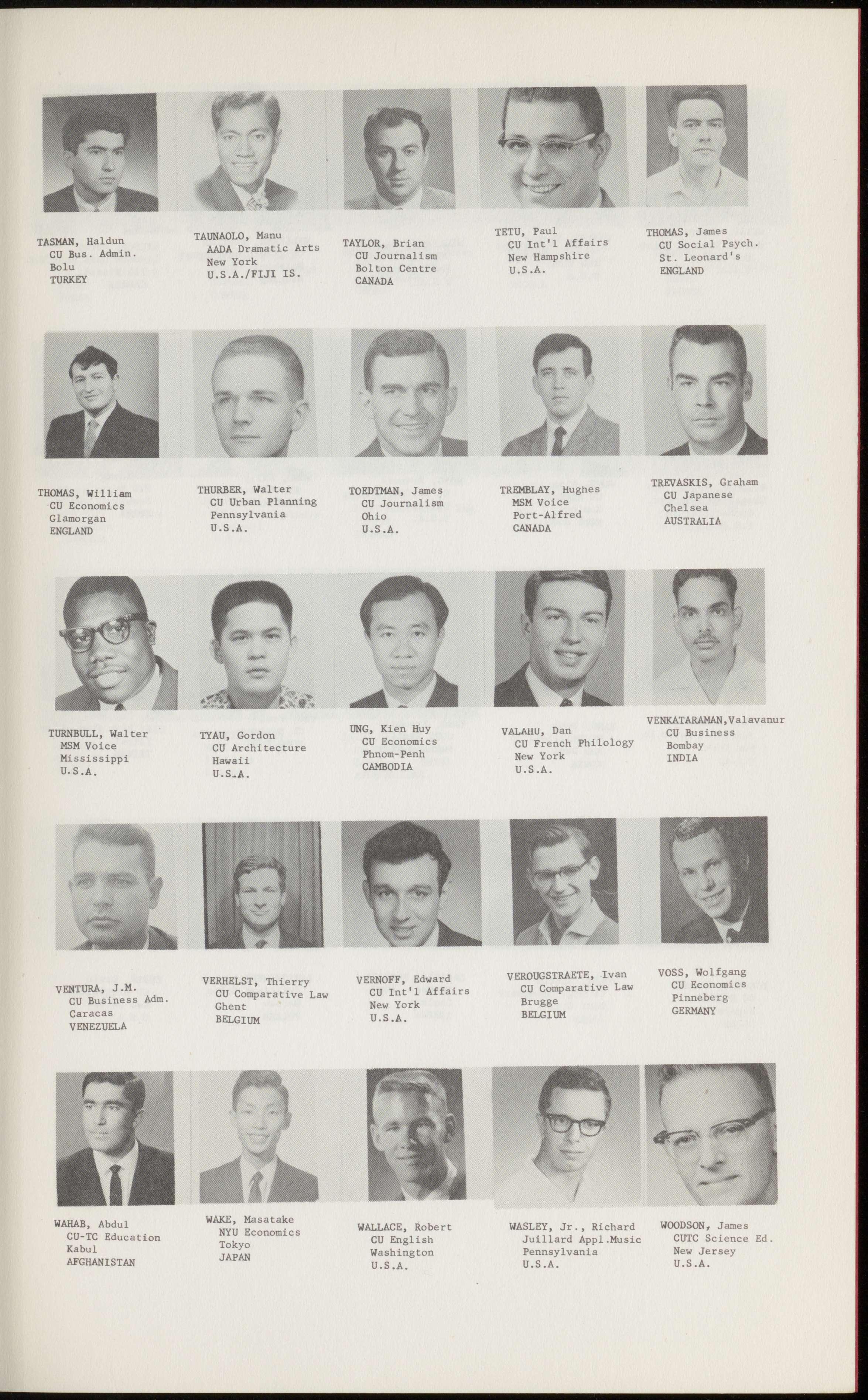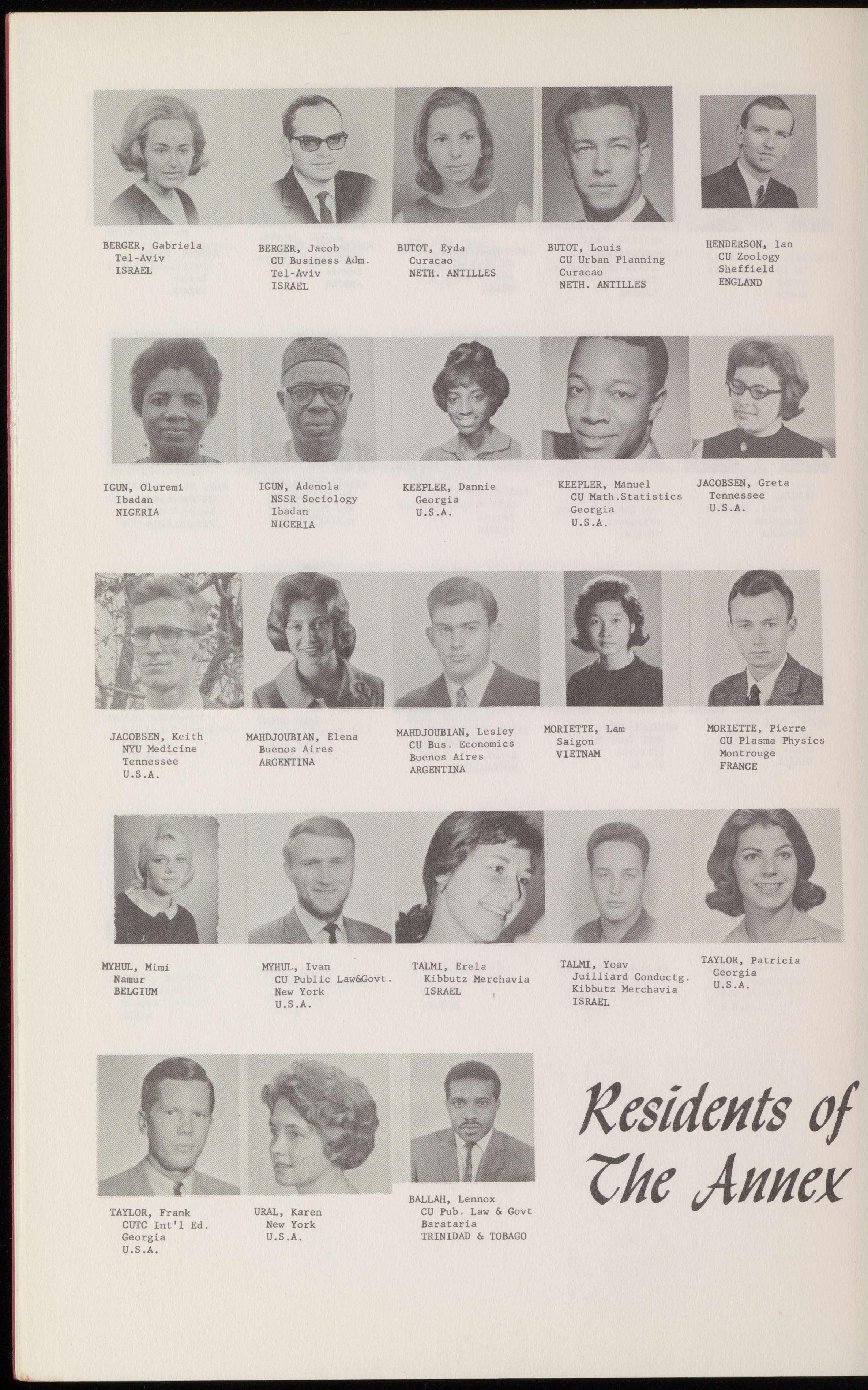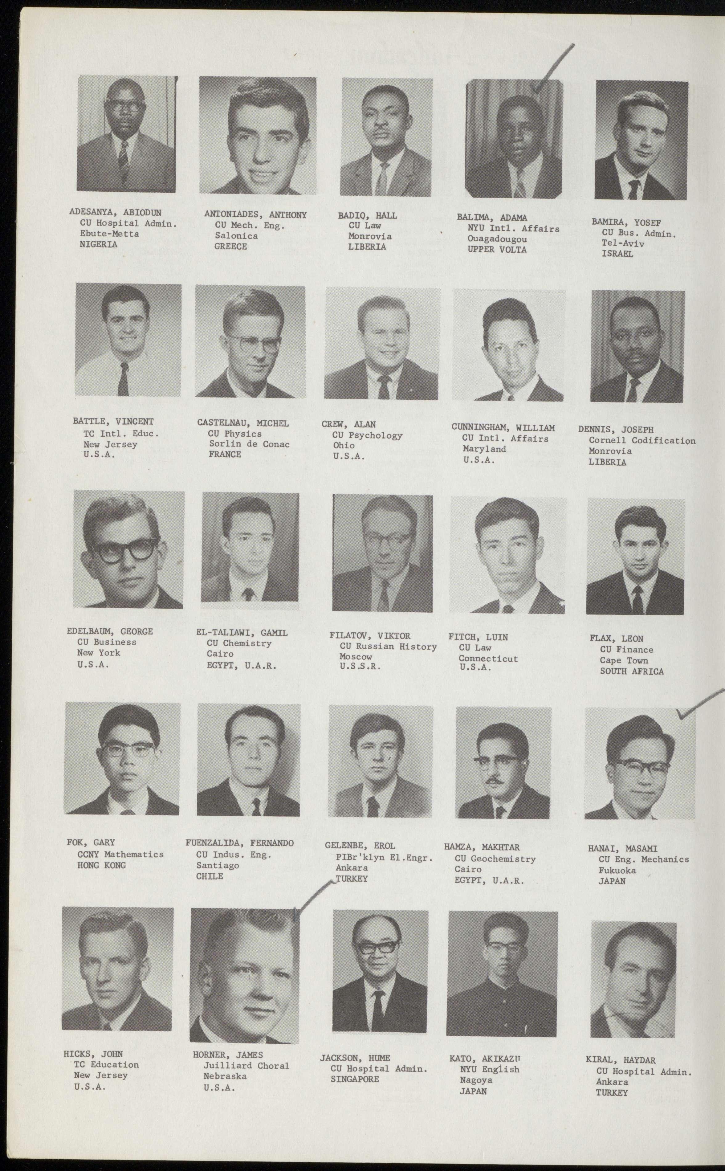 ANTONIADES, ANTHONY BADIQ, HALL BALIMA, ADAMA BAMIRA, YOSEF CU Mech. Eng. CU Law 4 NYU Intl. Affairs CU Bus. Admin. Salonica Monrovia Ouagadougou Tel-Aviv GREECE LIBERIA UPPER