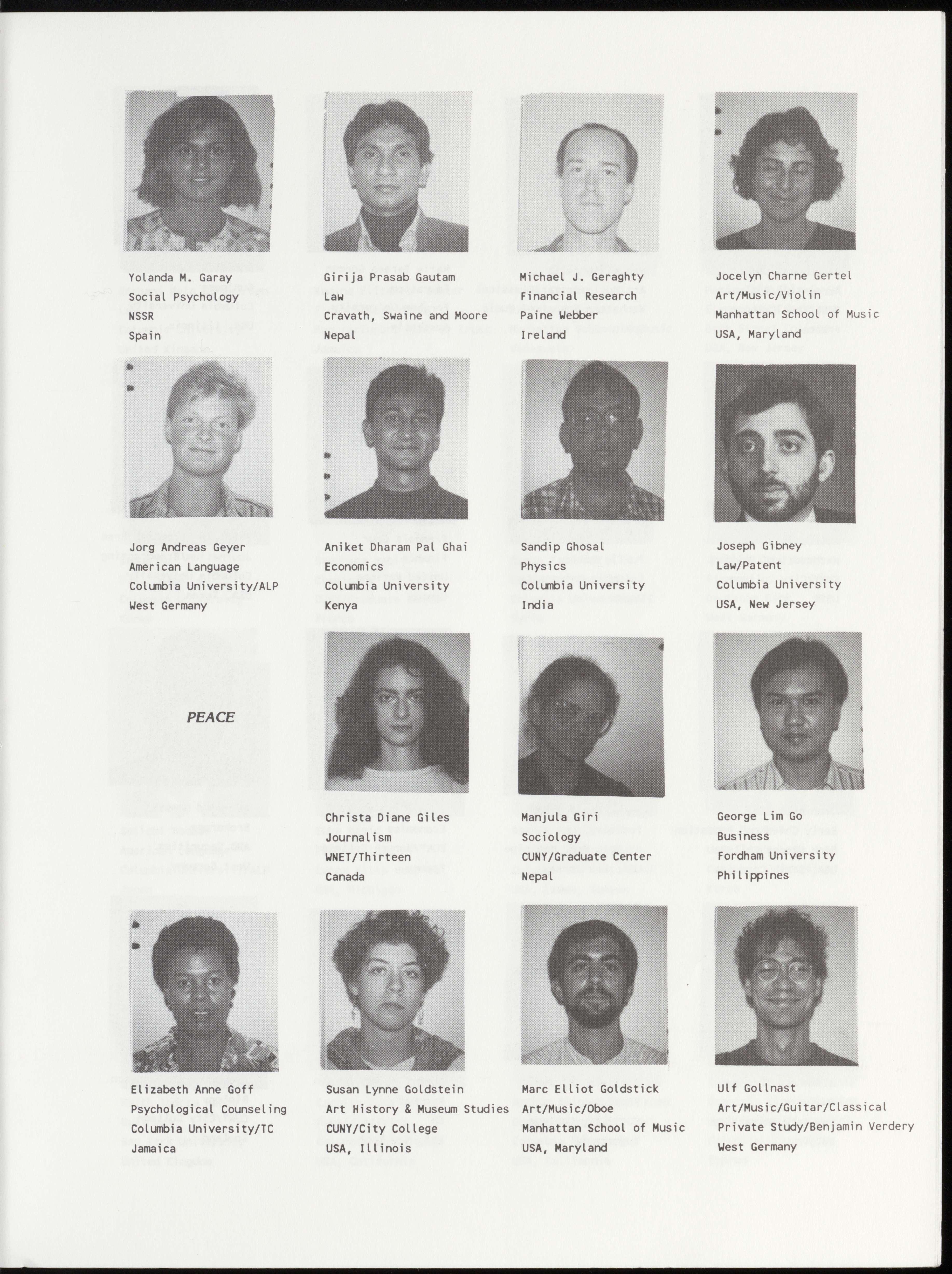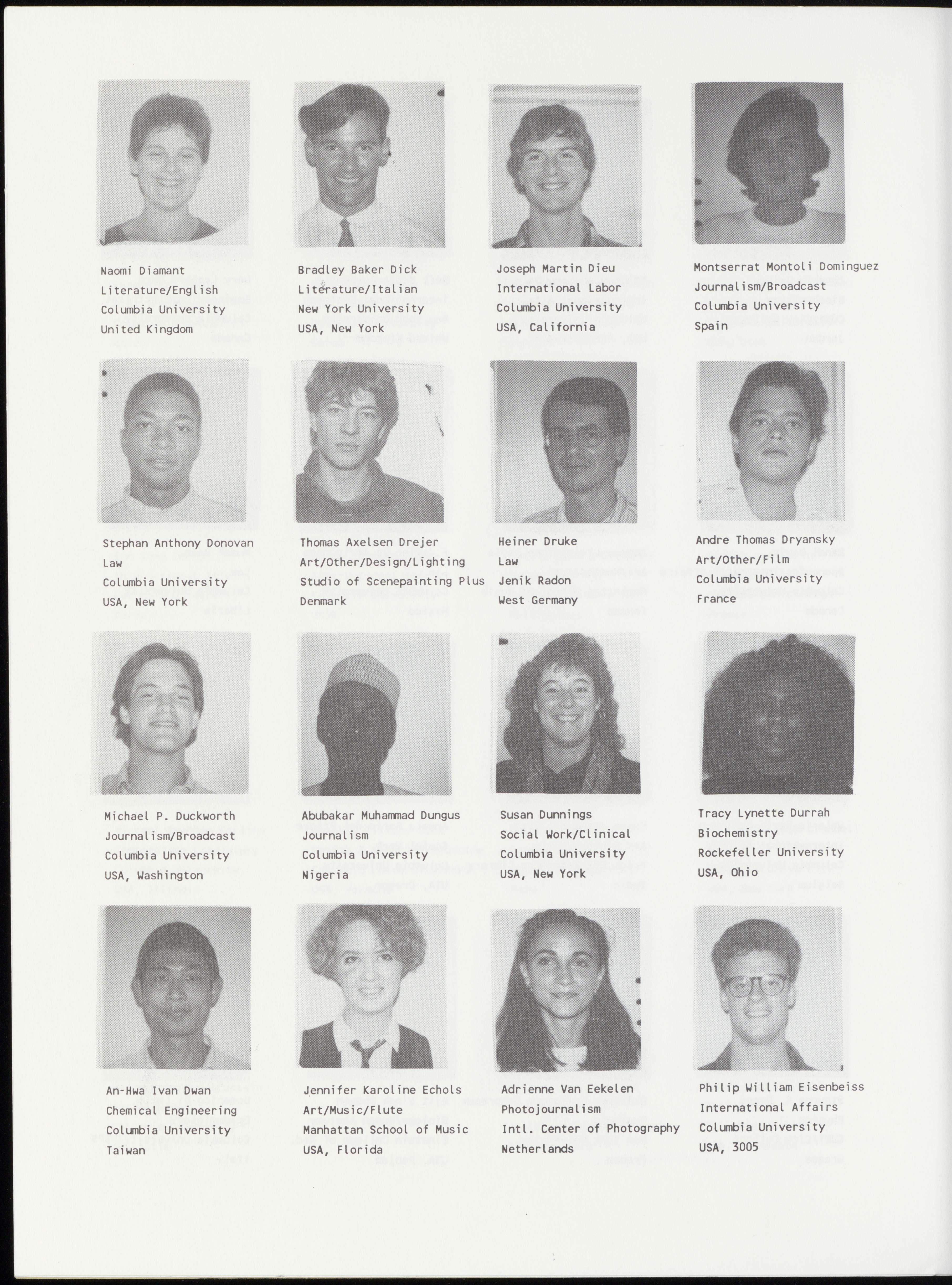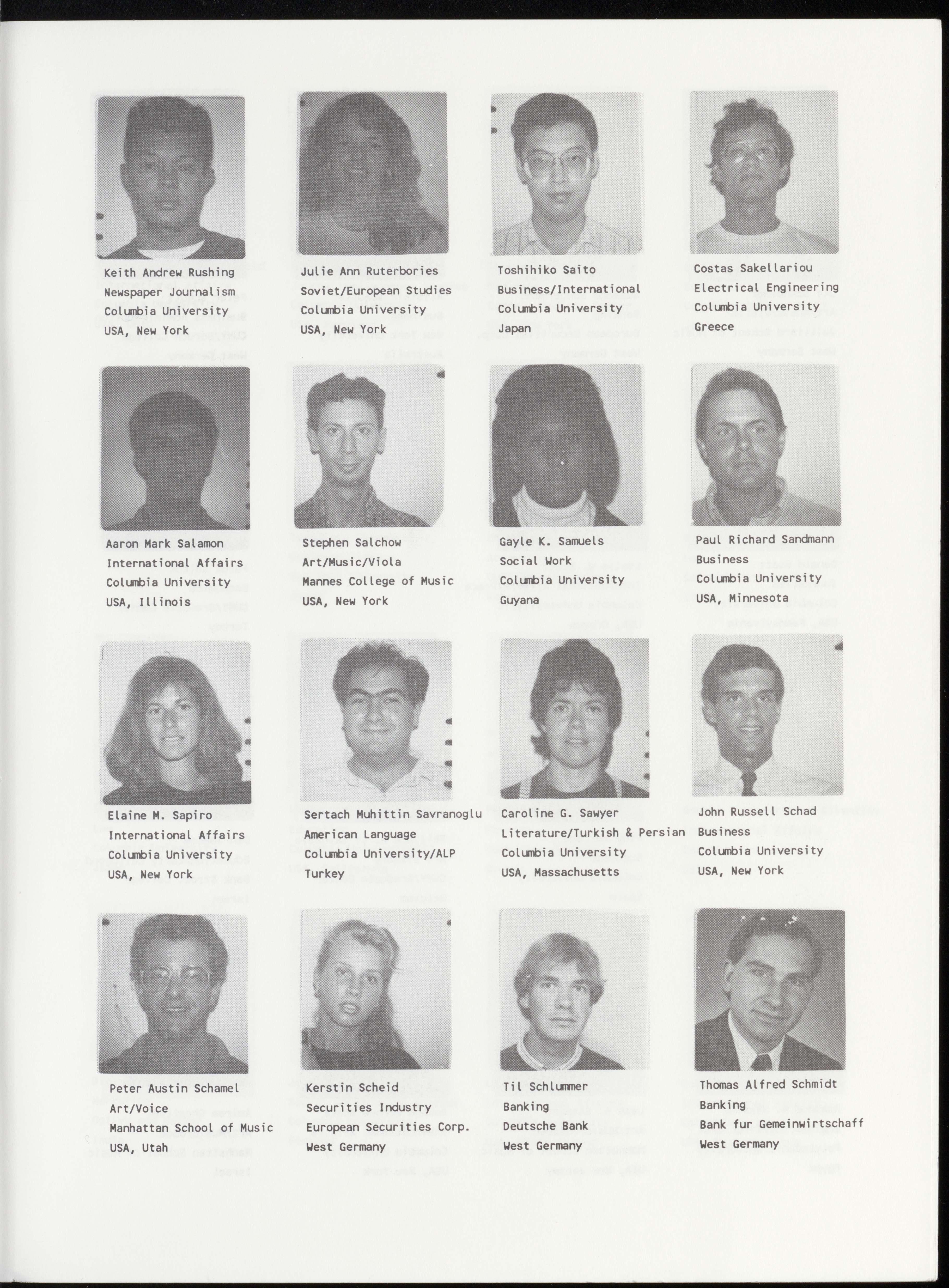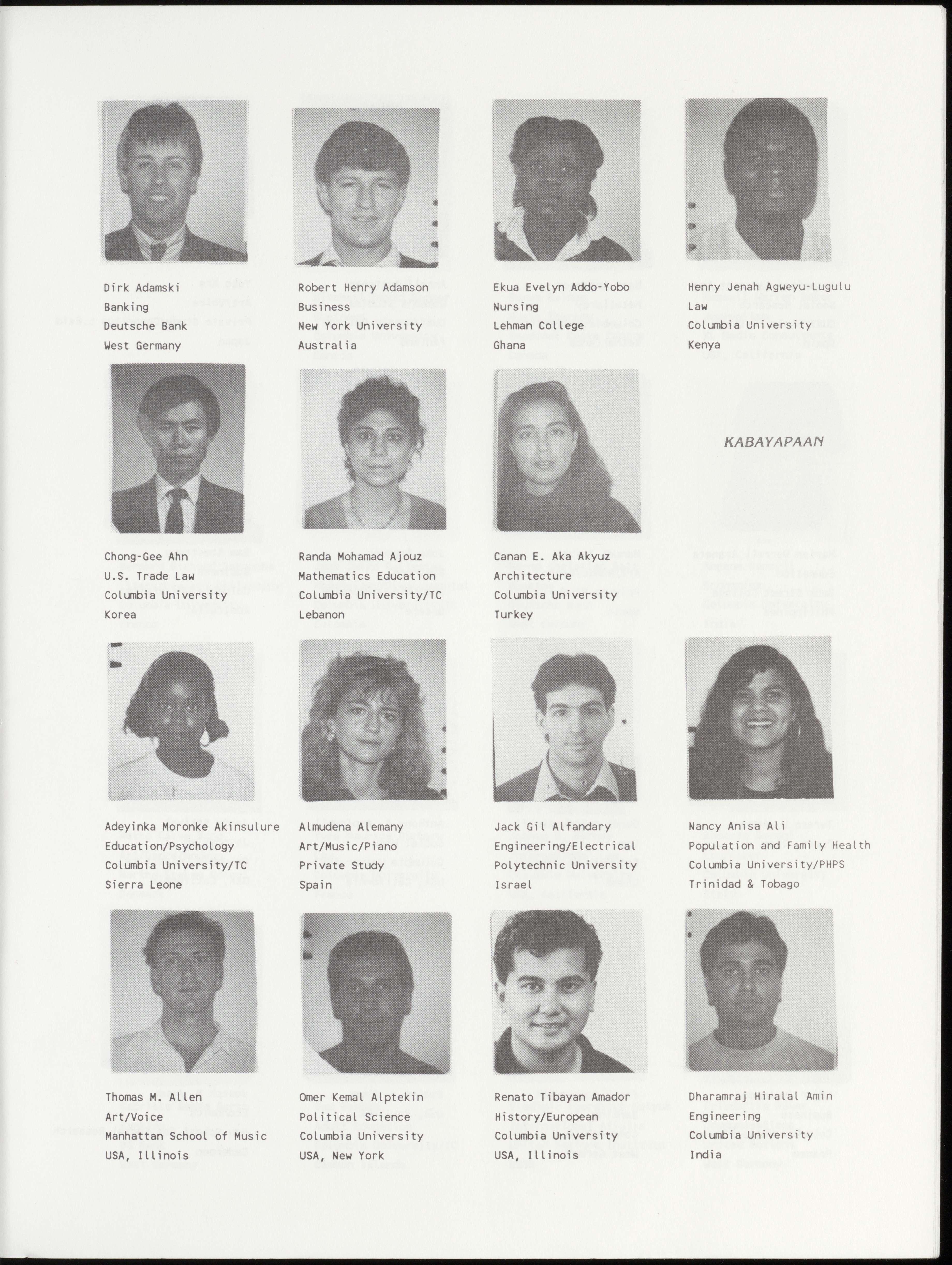 Bernard Richard Bakouche Jack Jairo Ballestas Bernd Christian Balz Angana Banerji Literature and Philosophy Psychology/Developmental Banking Economics Columbia University Columbia University/TC Deutsche Bank Columbia University France Colombia West Germany India