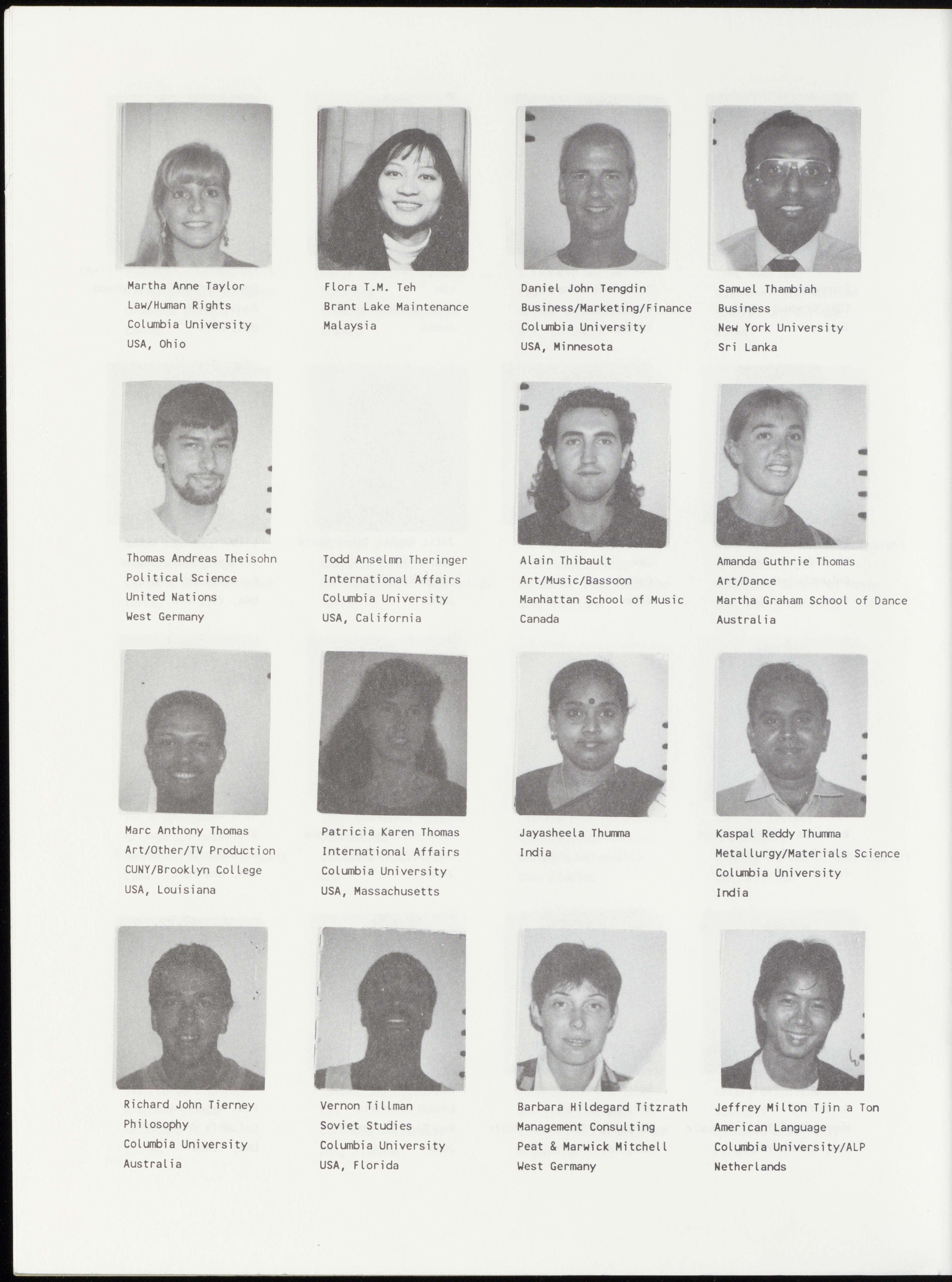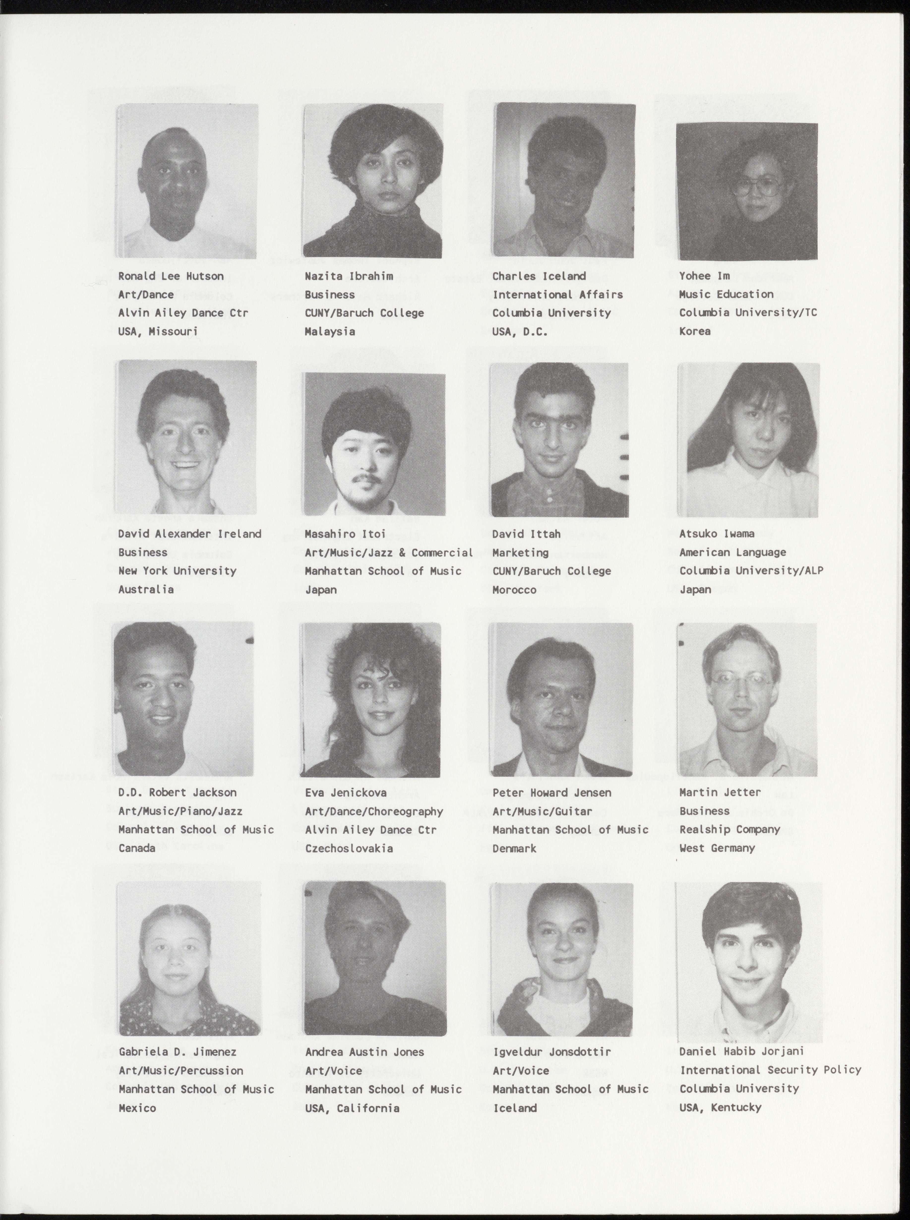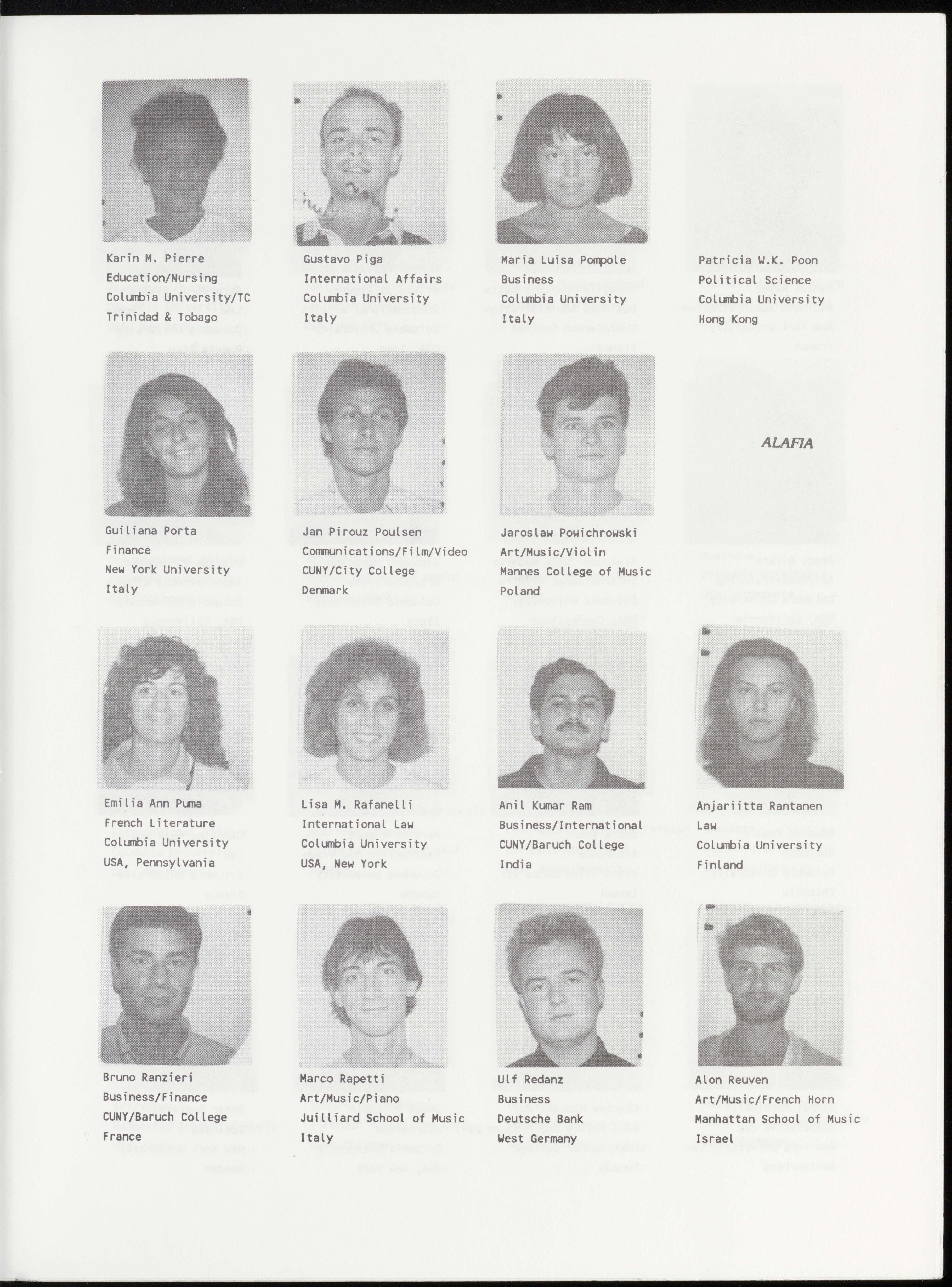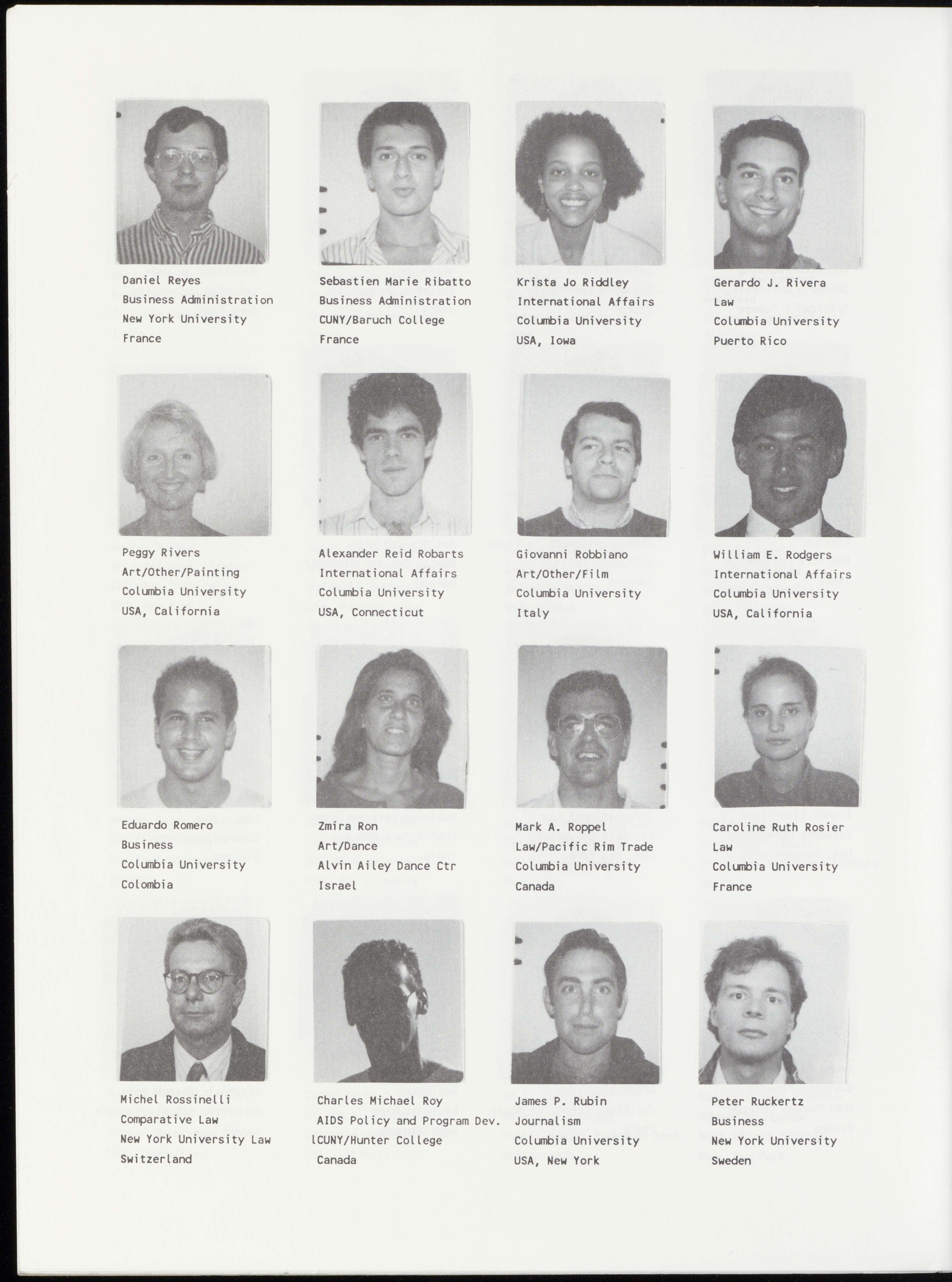 Mette Calve Bang Yves Maurice Barbery Joshua S. Barney Roberto Baroni Art/Dance/Modern Law International Law Law/Labor Martha Graham School Columbia University Columbia University Columbia University Denmark France USA, California Italy