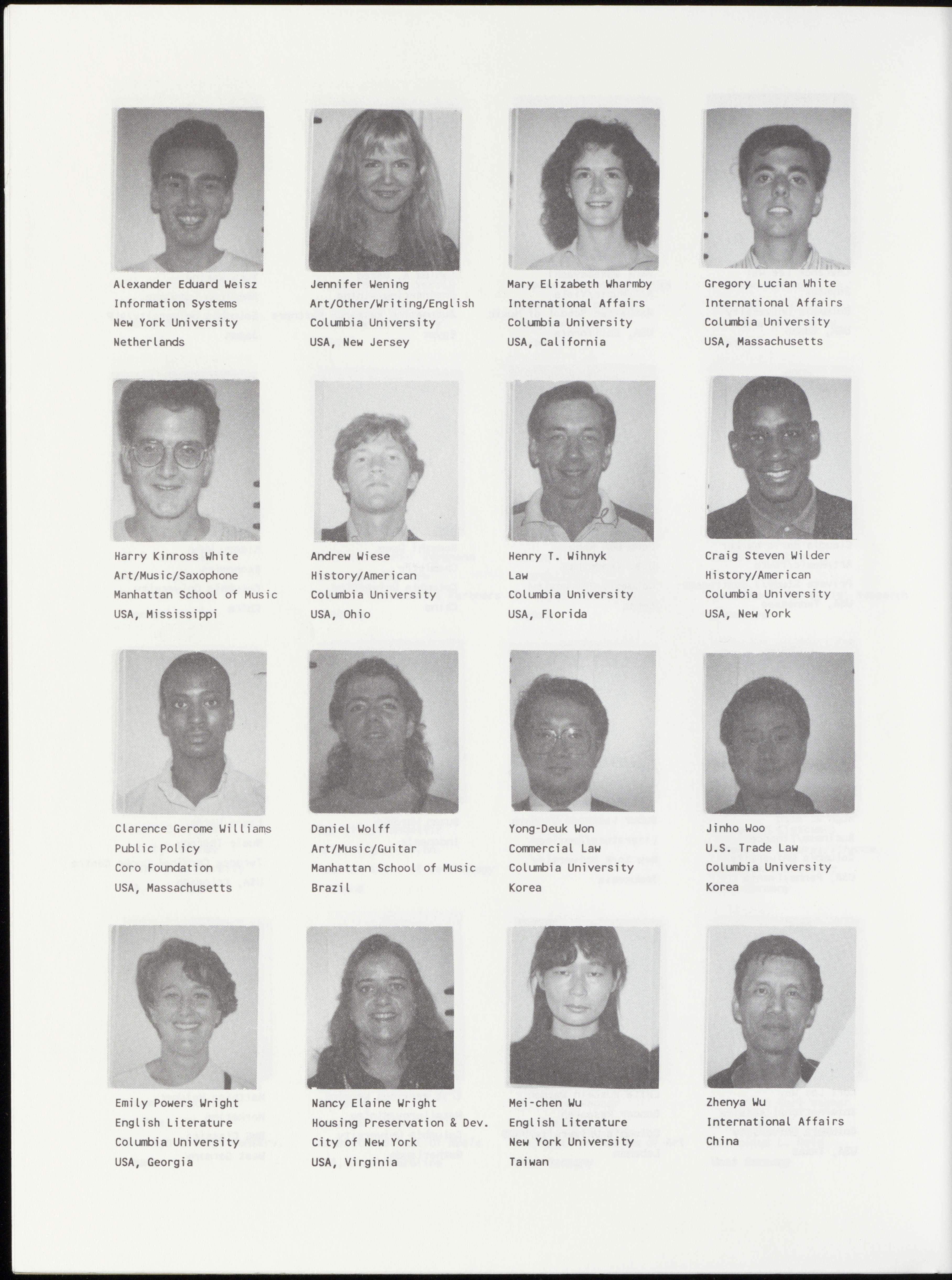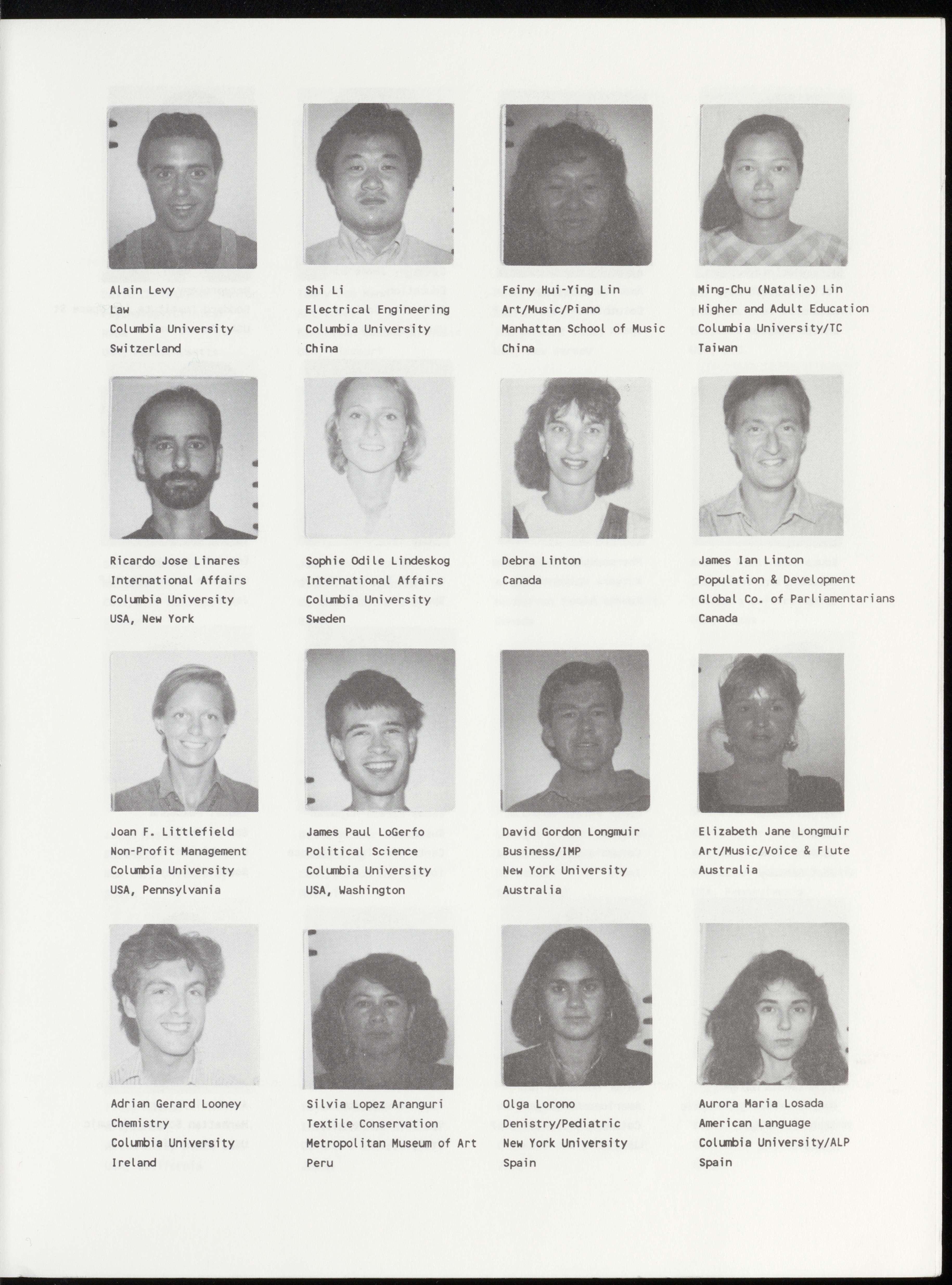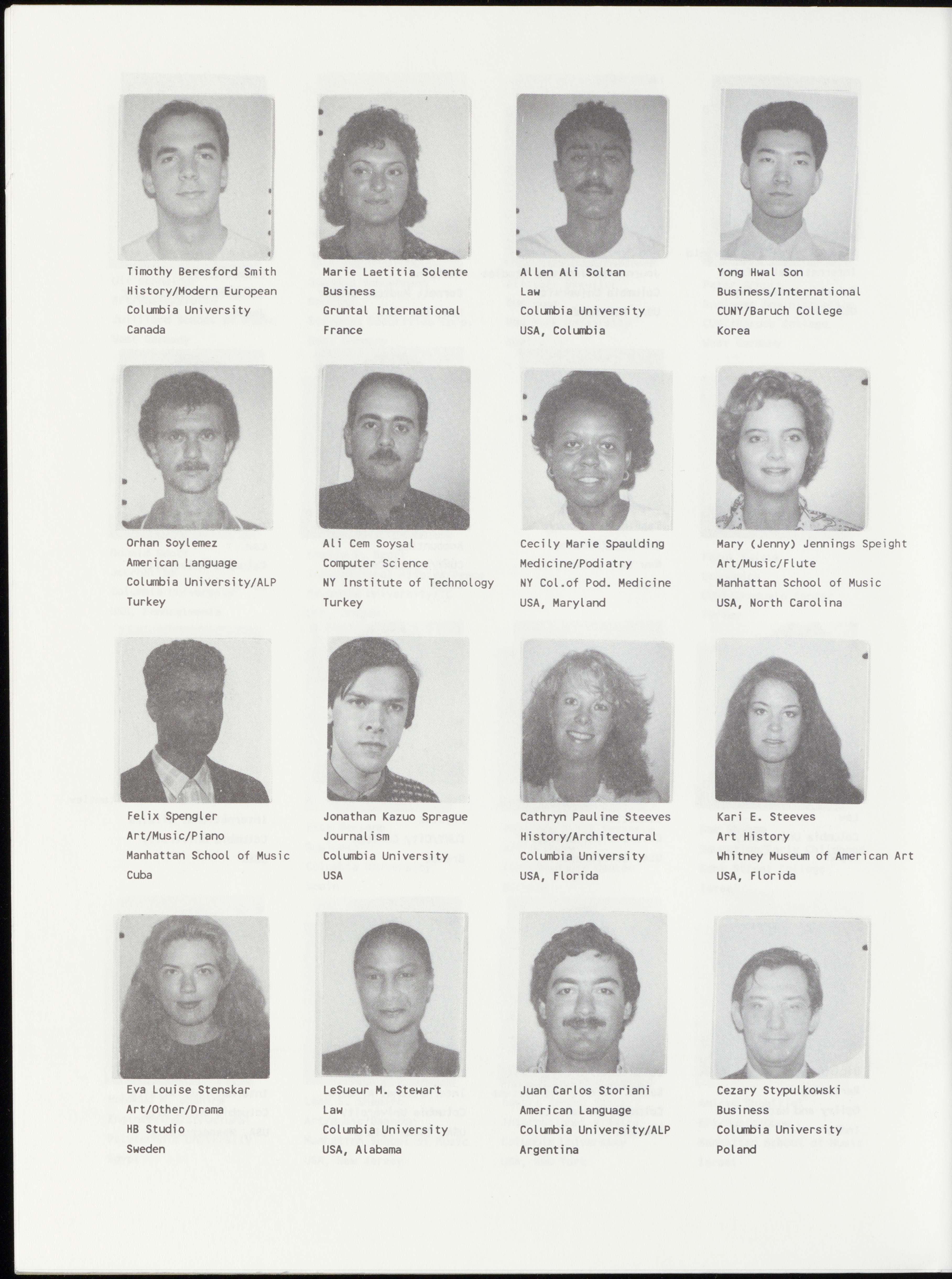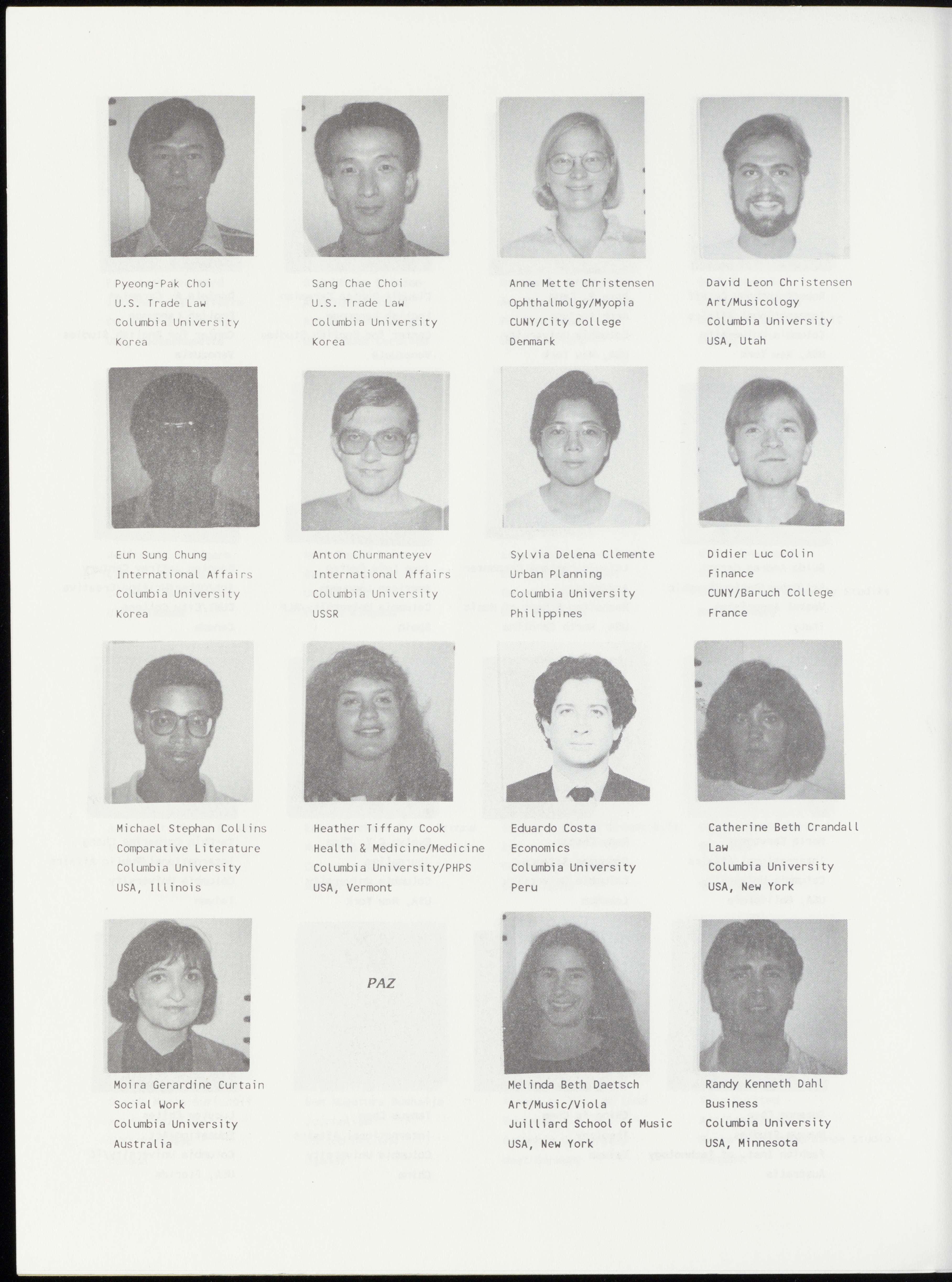 Mette Calve Bang Yves Maurice Barbery Joshua S. Barney Roberto Baroni Art/Dance/Modern Law International Law Law/Labor Martha Graham School Columbia University Columbia University Columbia University Denmark France USA, California Italy