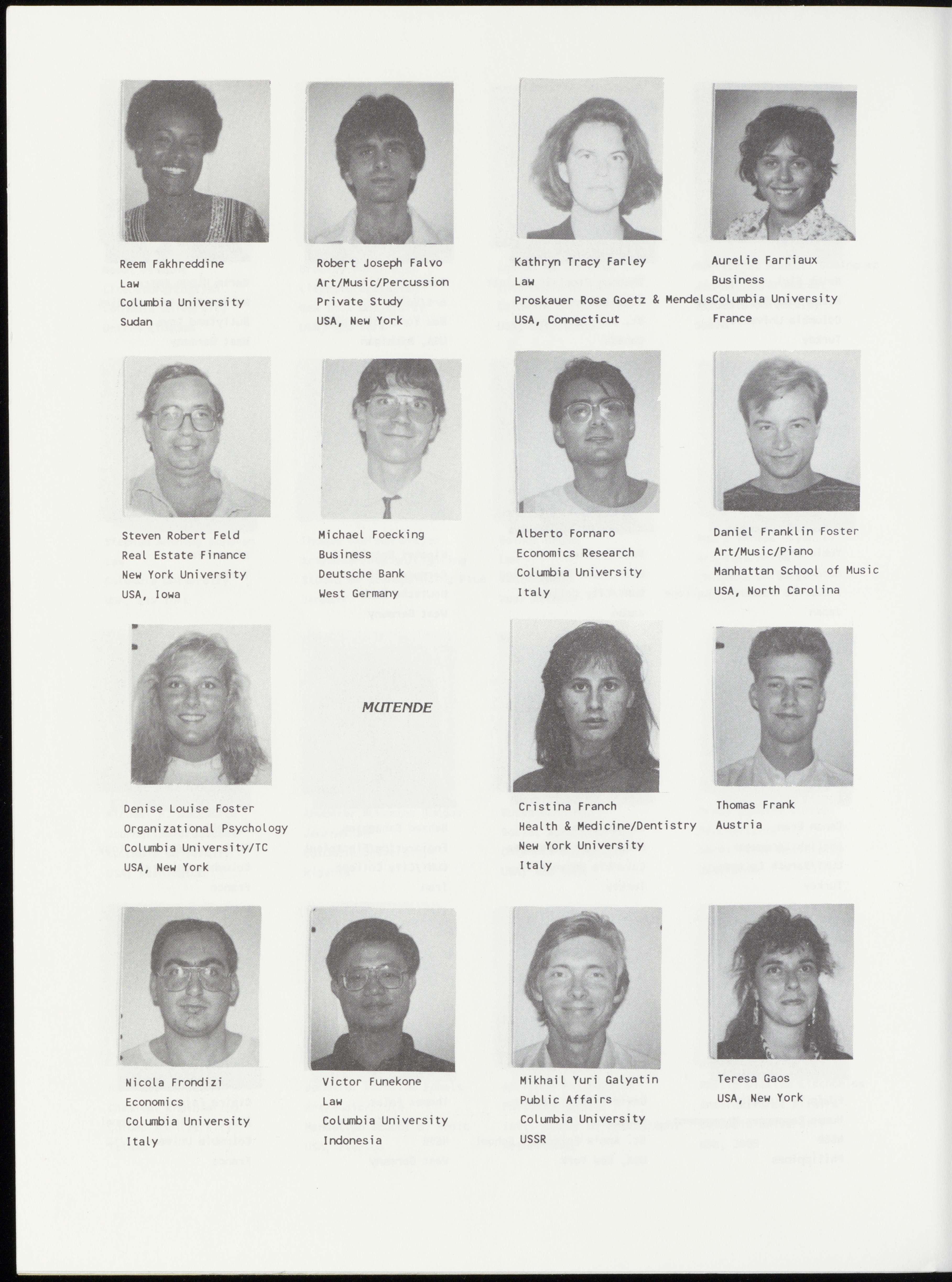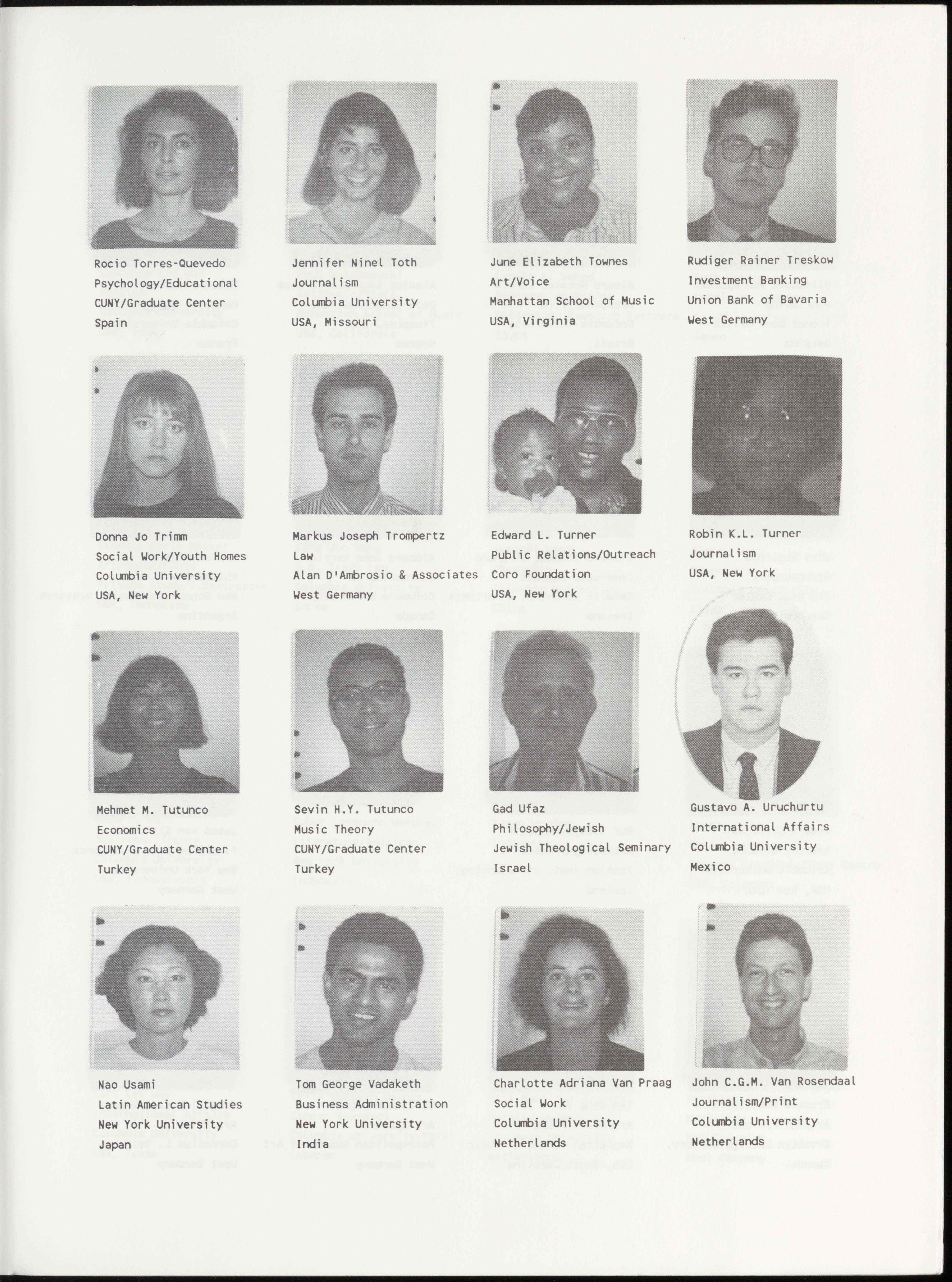 BenMugaruraBushaija AlbertM.ButzdeLuna Art/Music/Piano Journalism Business SUNY/Purchase UnitedNations ColumbiaUniversity Canada Uganda WestGermany