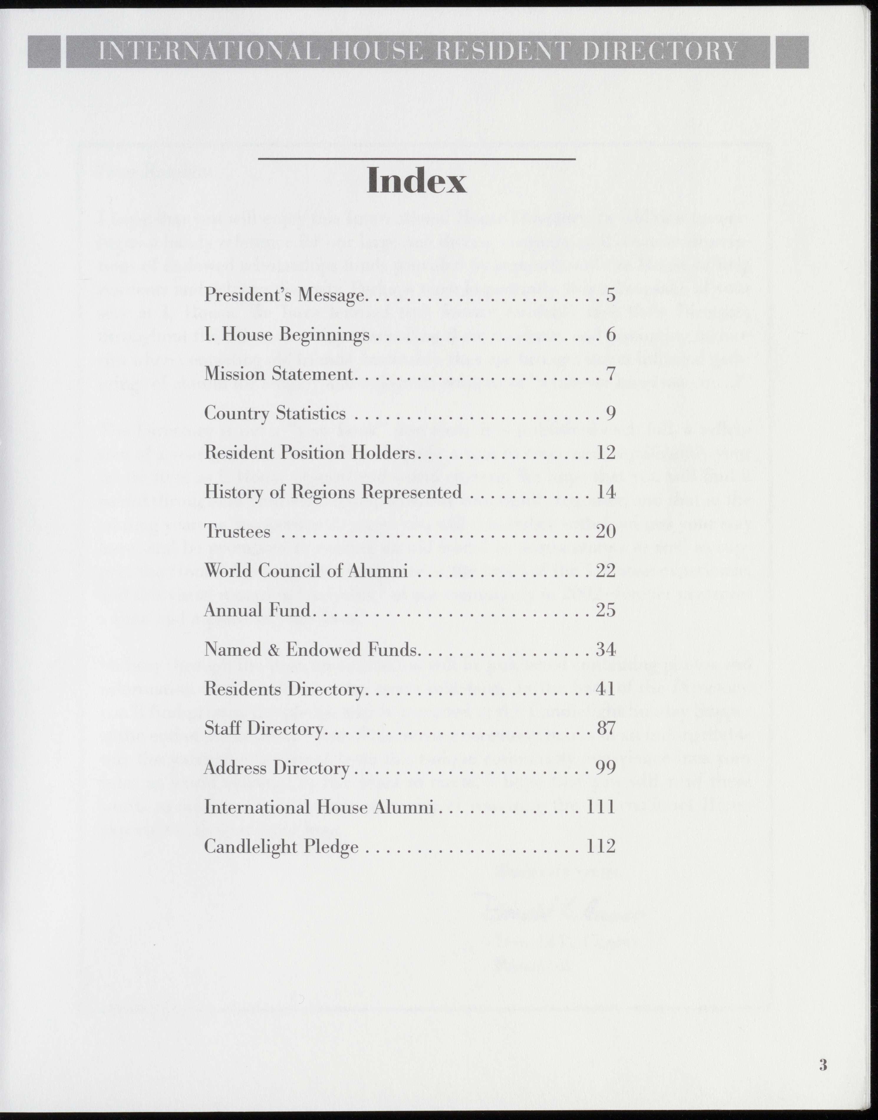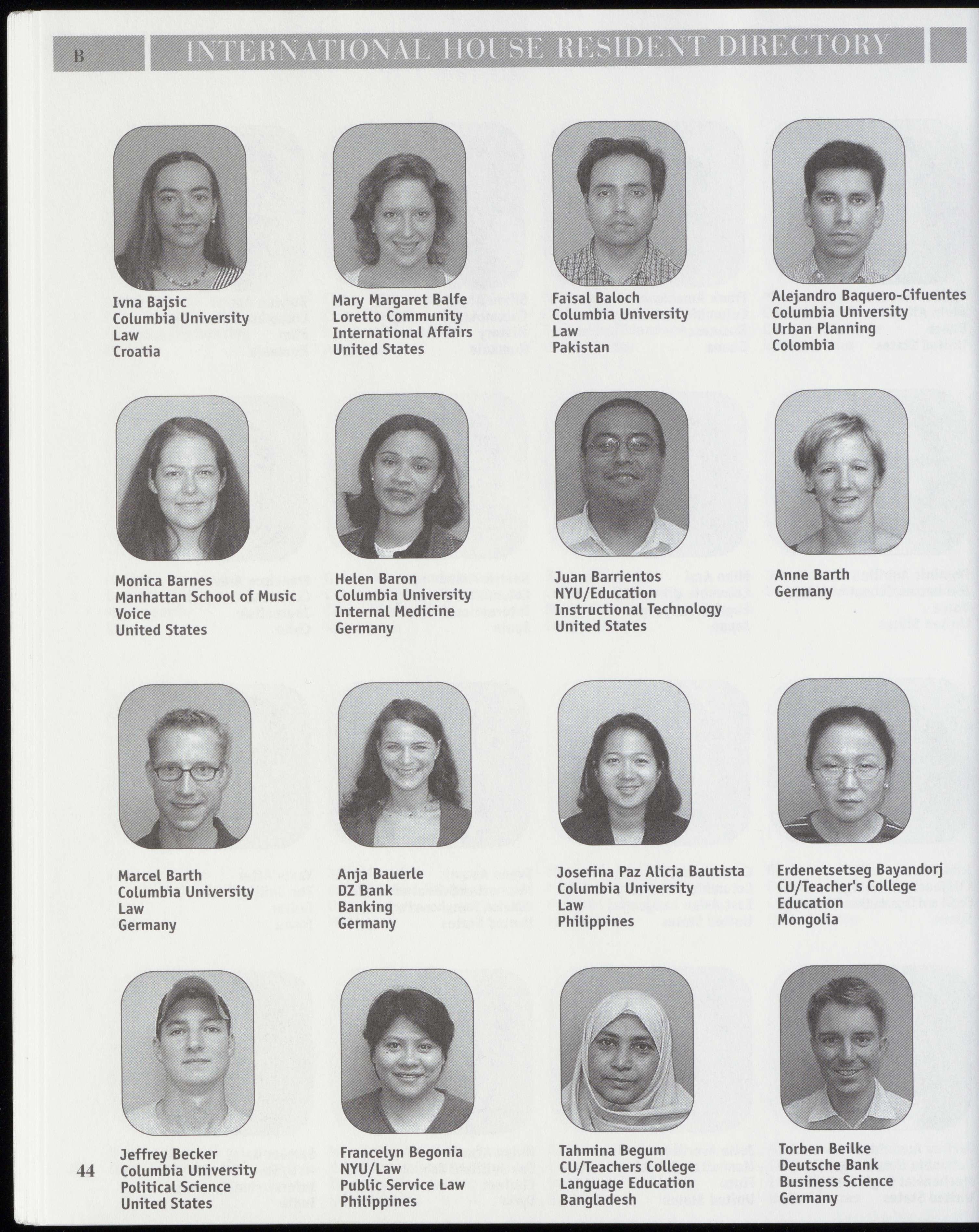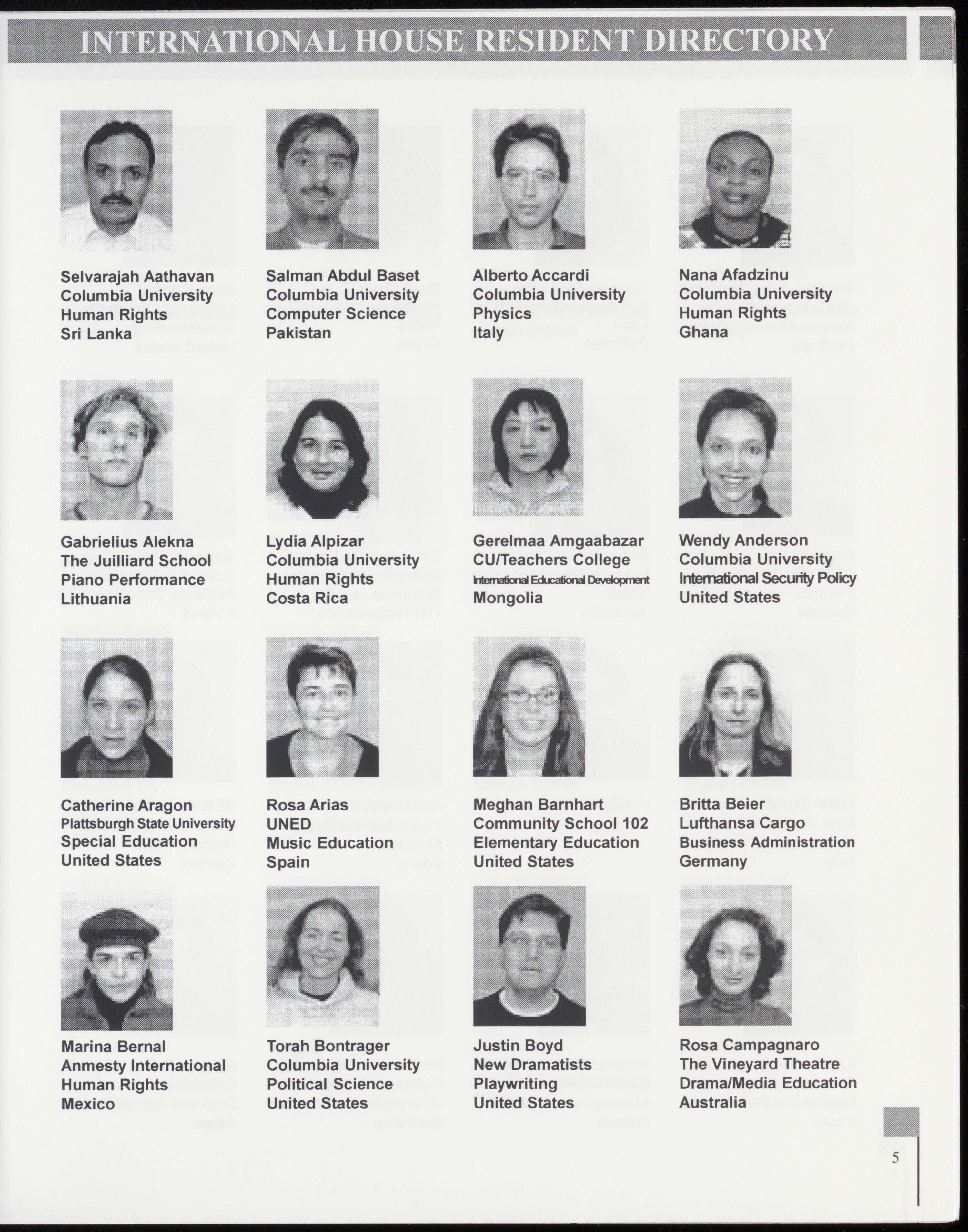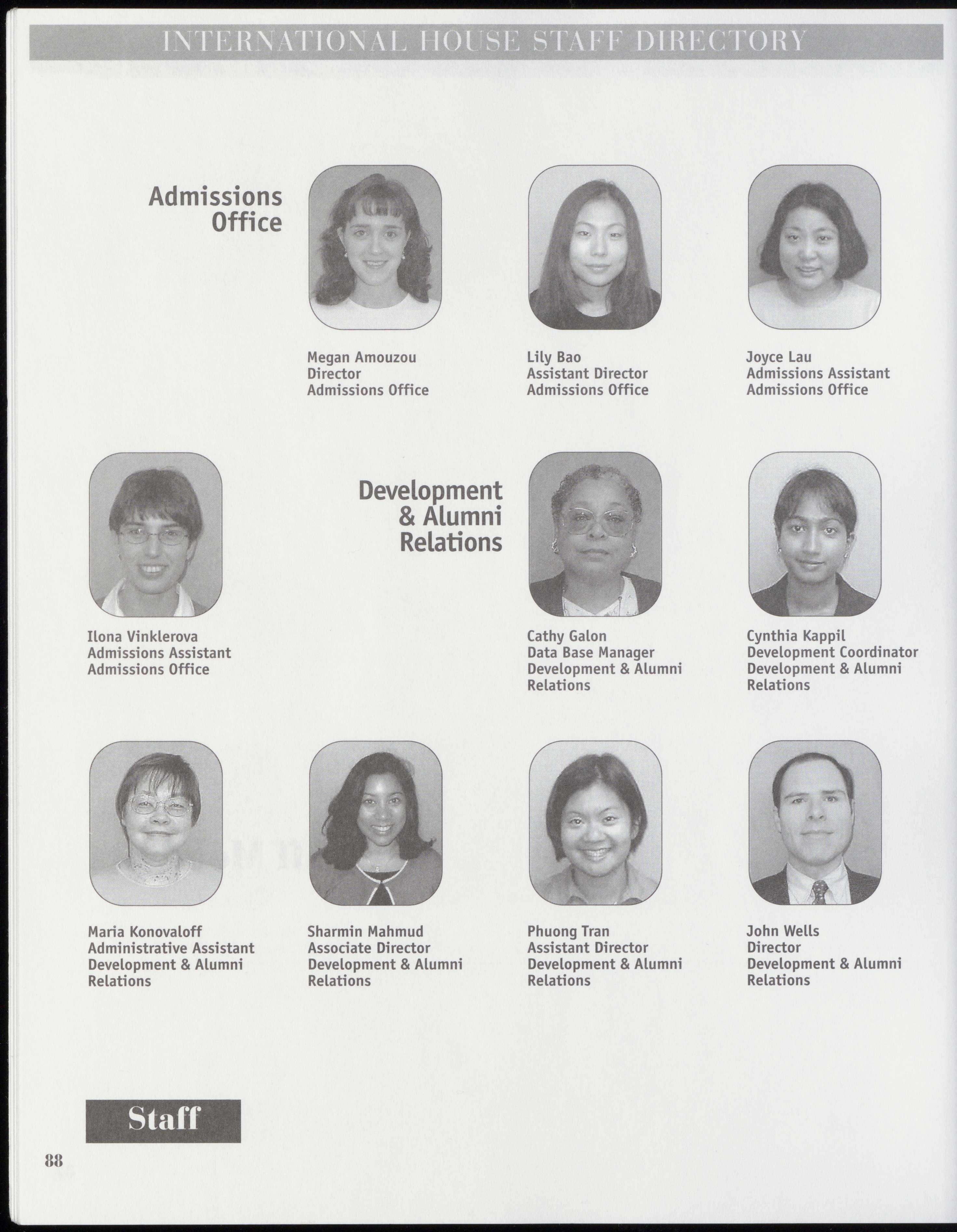 [It is a common misconception that resident members’ fees more than cover InternationalHouse’soperatingexpenses. Actually,theoppositeistrue.InFiscal Year 2001, resident member fees were not sufficient to cover our budget of almost $10.7million. The House relies upon the Annual Fund and its endowment earnings tomake upthisdeficiteveryyear, subsidizing each resident by $2,500 on average per year.