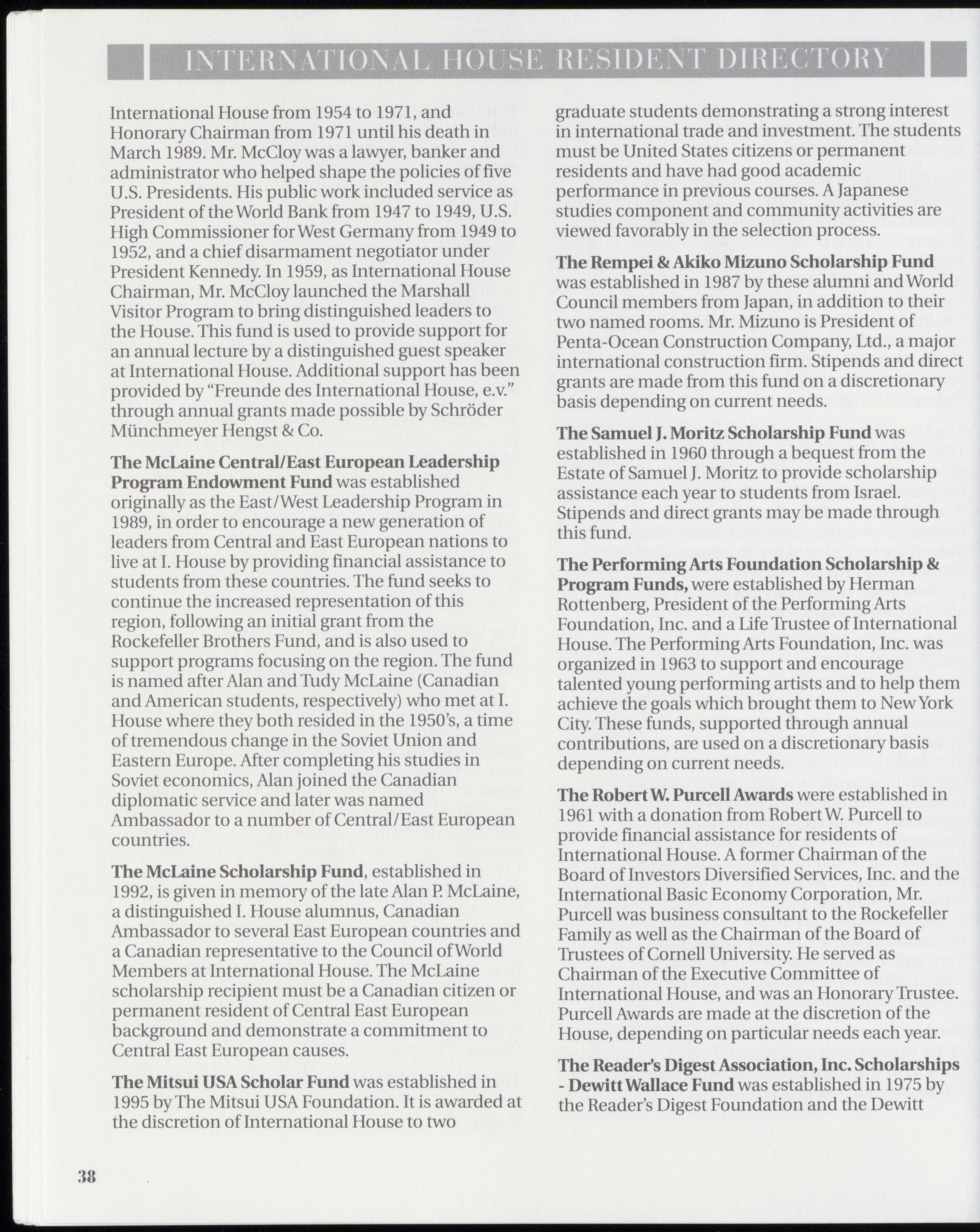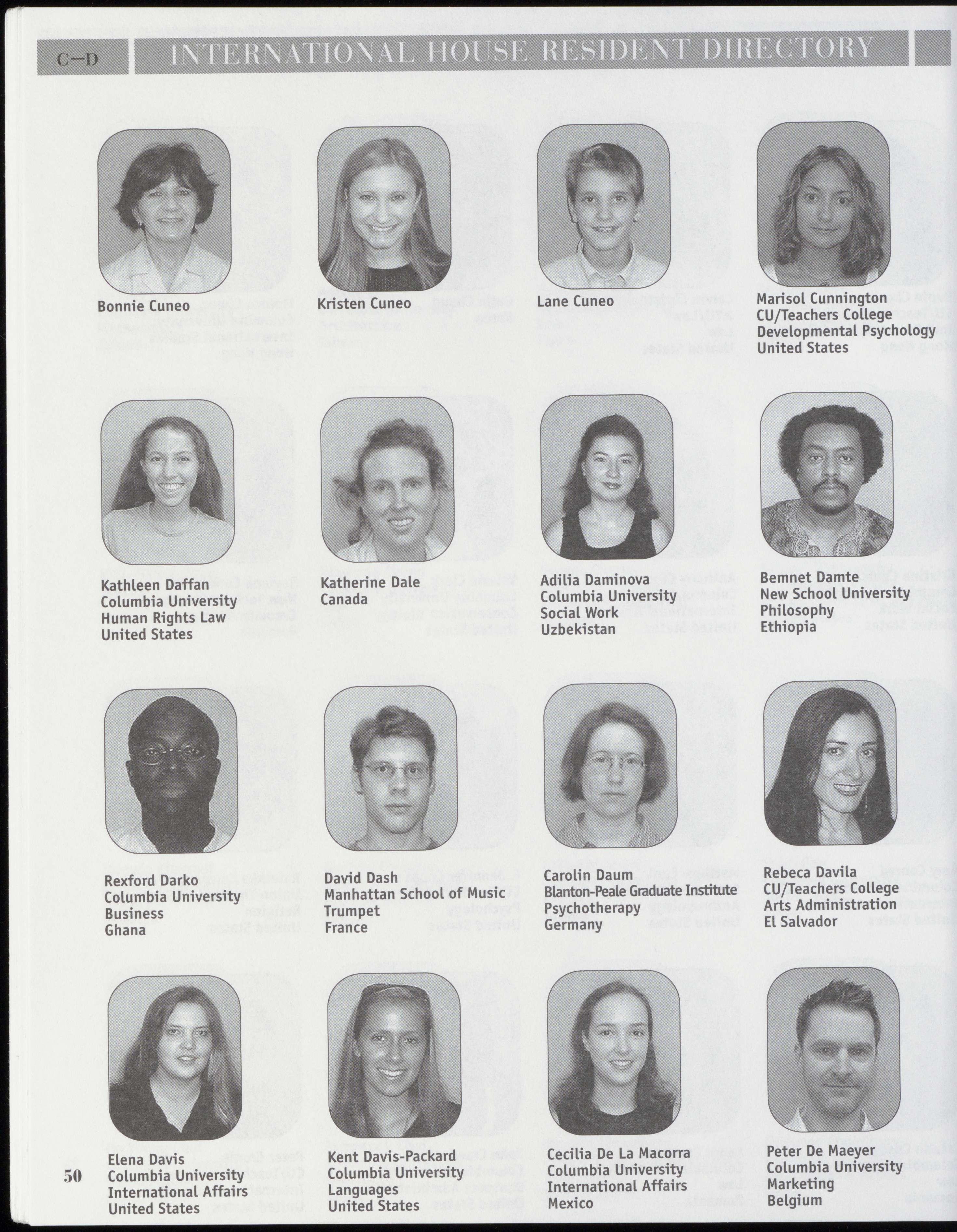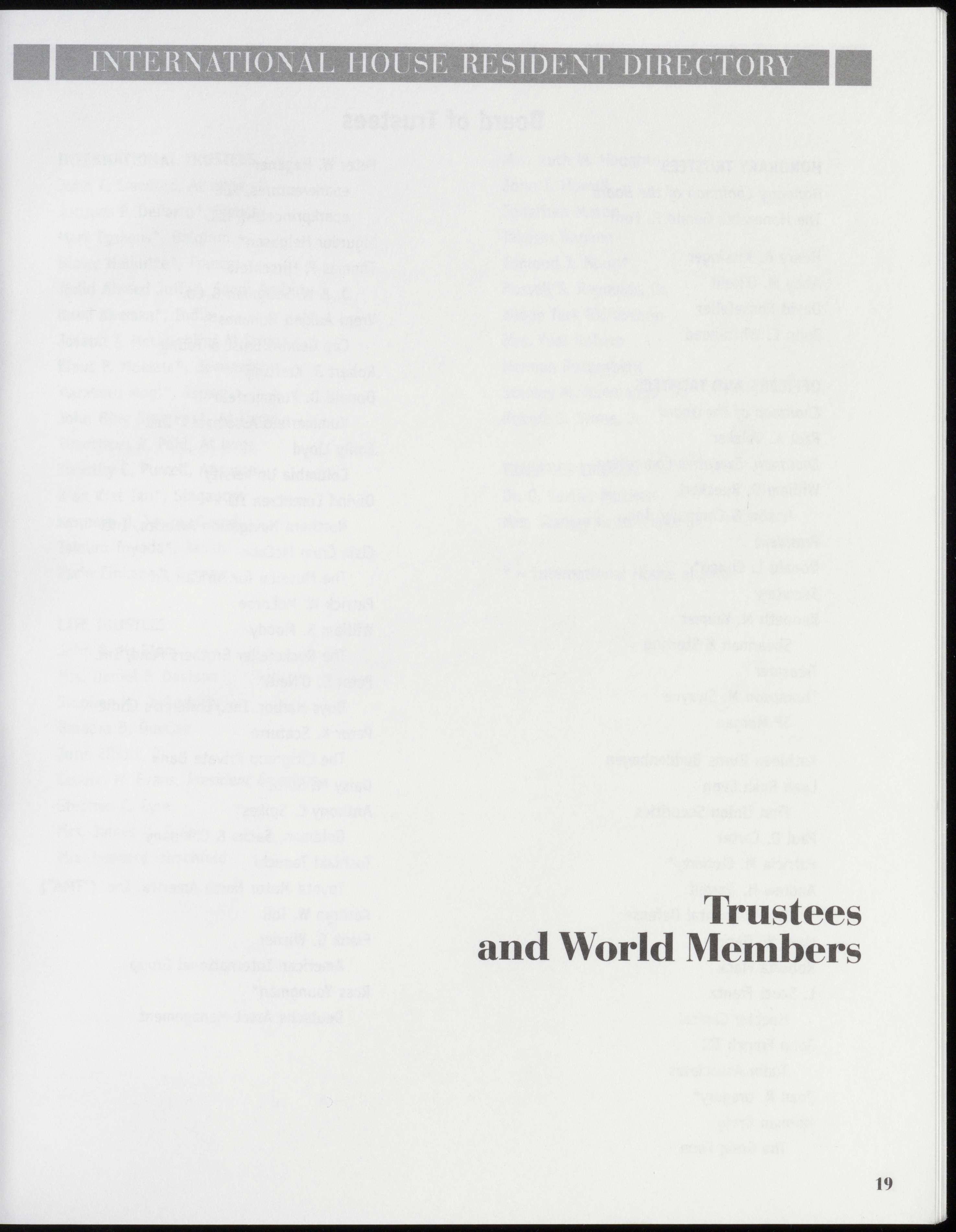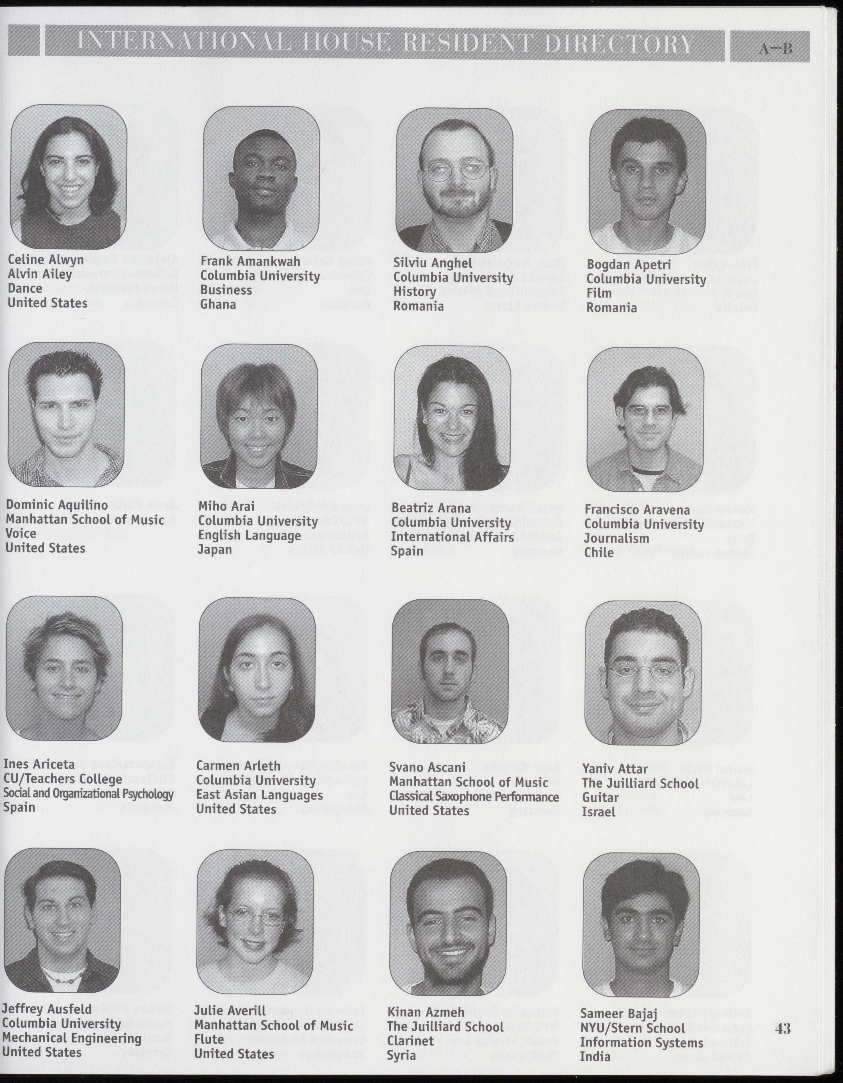 [It is a common misconception that resident members’ fees more than cover InternationalHouse’soperatingexpenses. Actually,theoppositeistrue.InFiscal Year 2001, resident member fees were not sufficient to cover our budget of almost $10.7million. The House relies upon the Annual Fund and its endowment earnings tomake upthisdeficiteveryyear, subsidizing each resident by $2,500 on average per year.