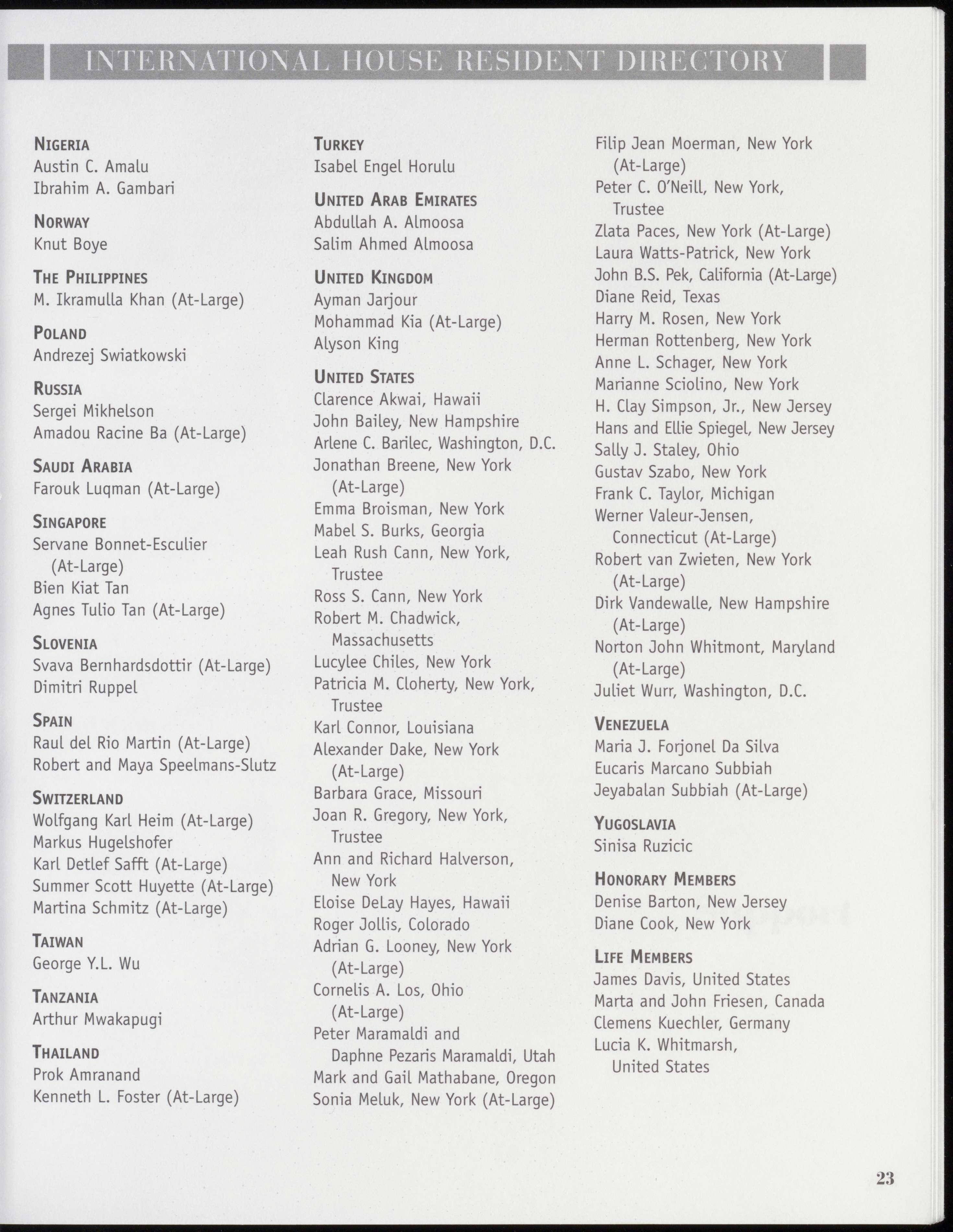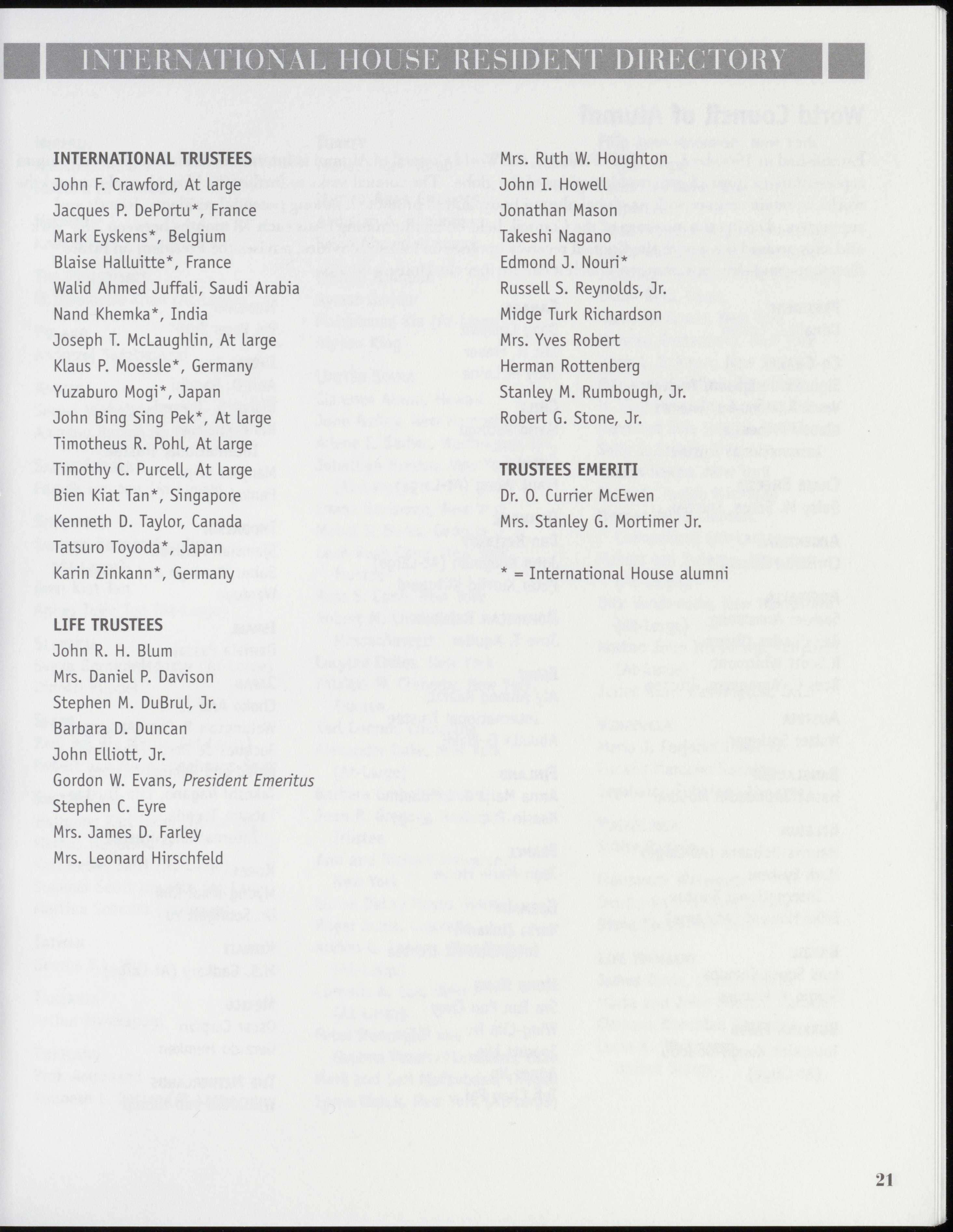 It is with the deepest gratitude that International House recognizes the following donors to the Annual Fund: