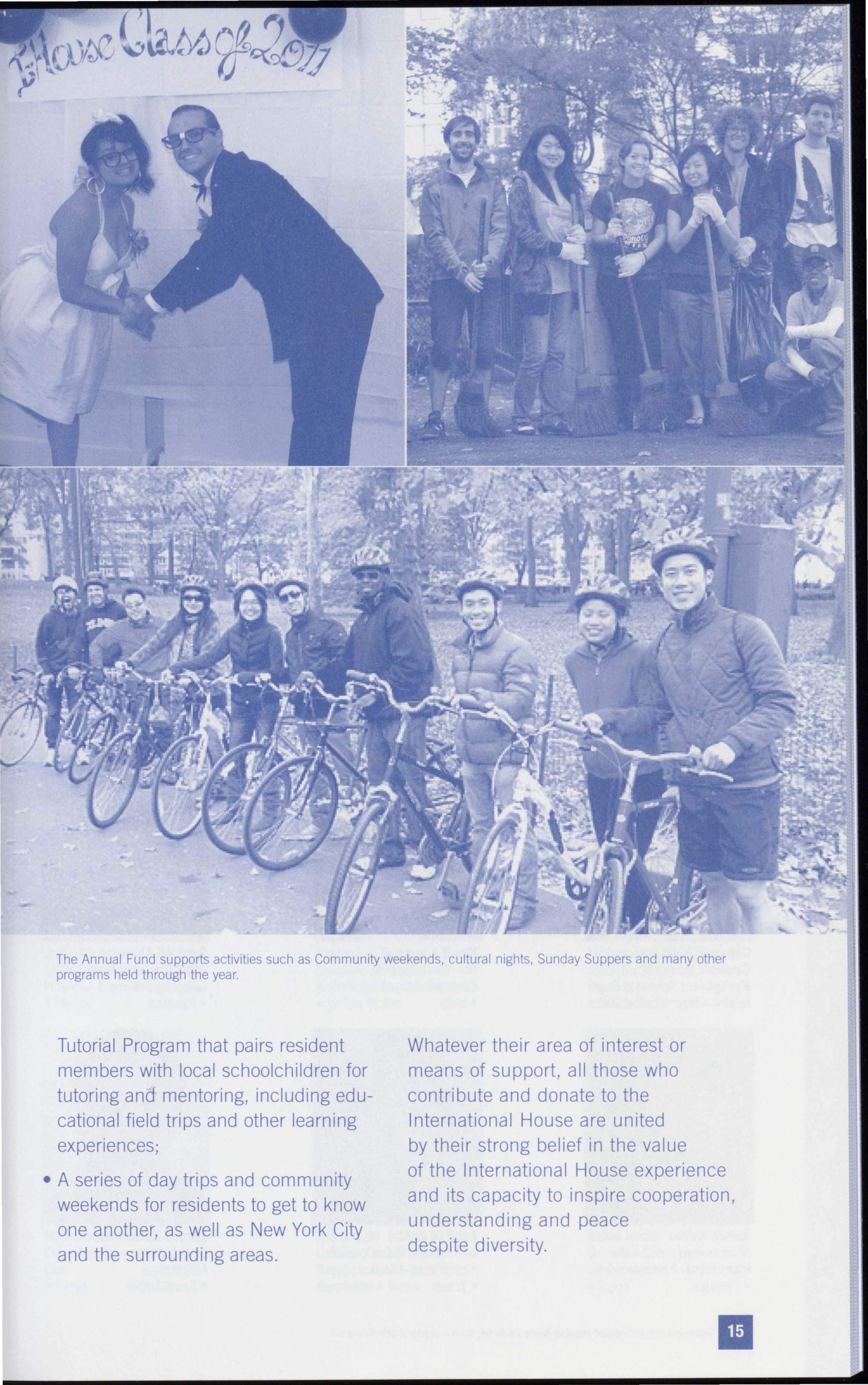 In addition to subsidizing the residents' expenses and providing scholarship and fellowship aid, donations to International House also support: