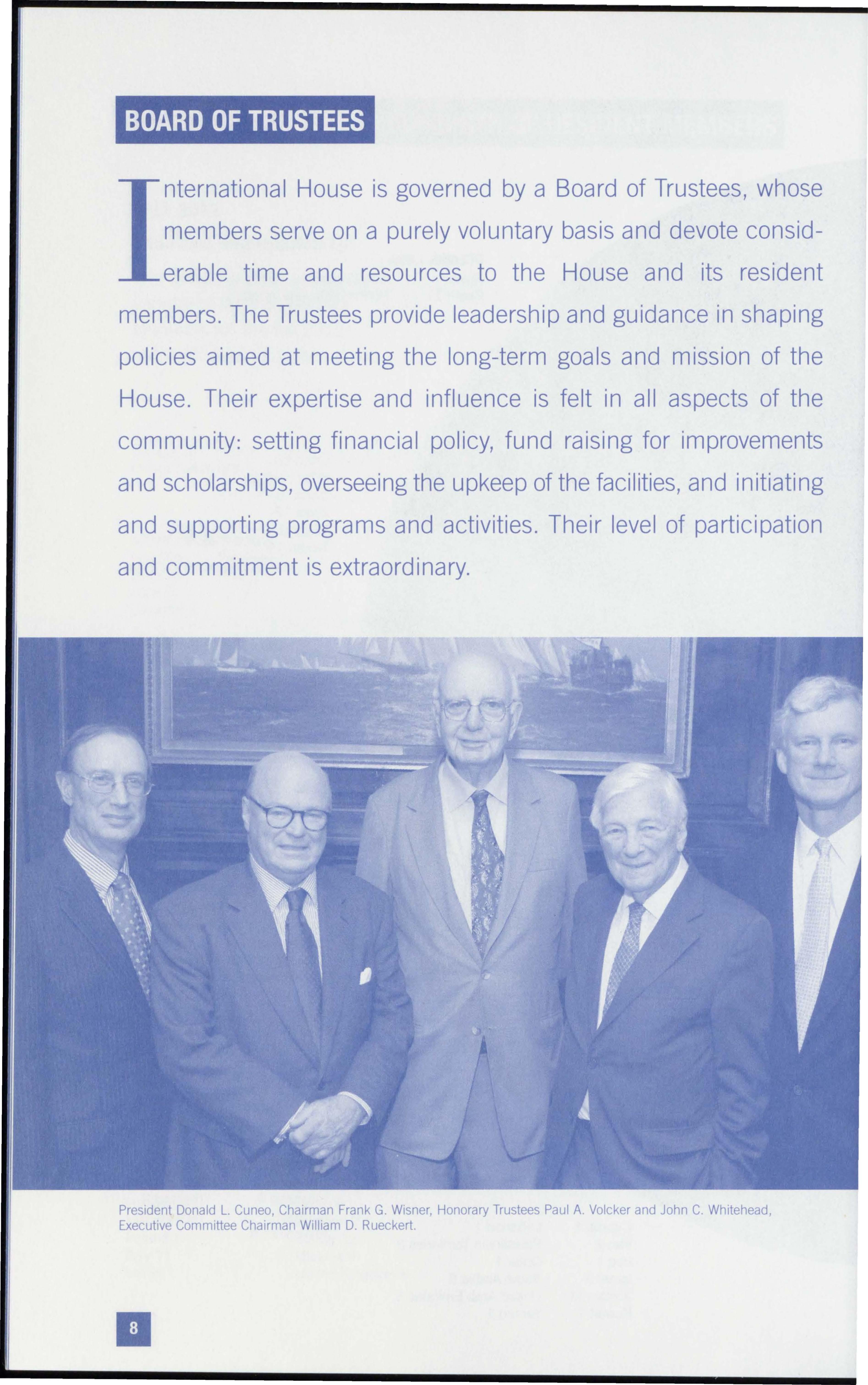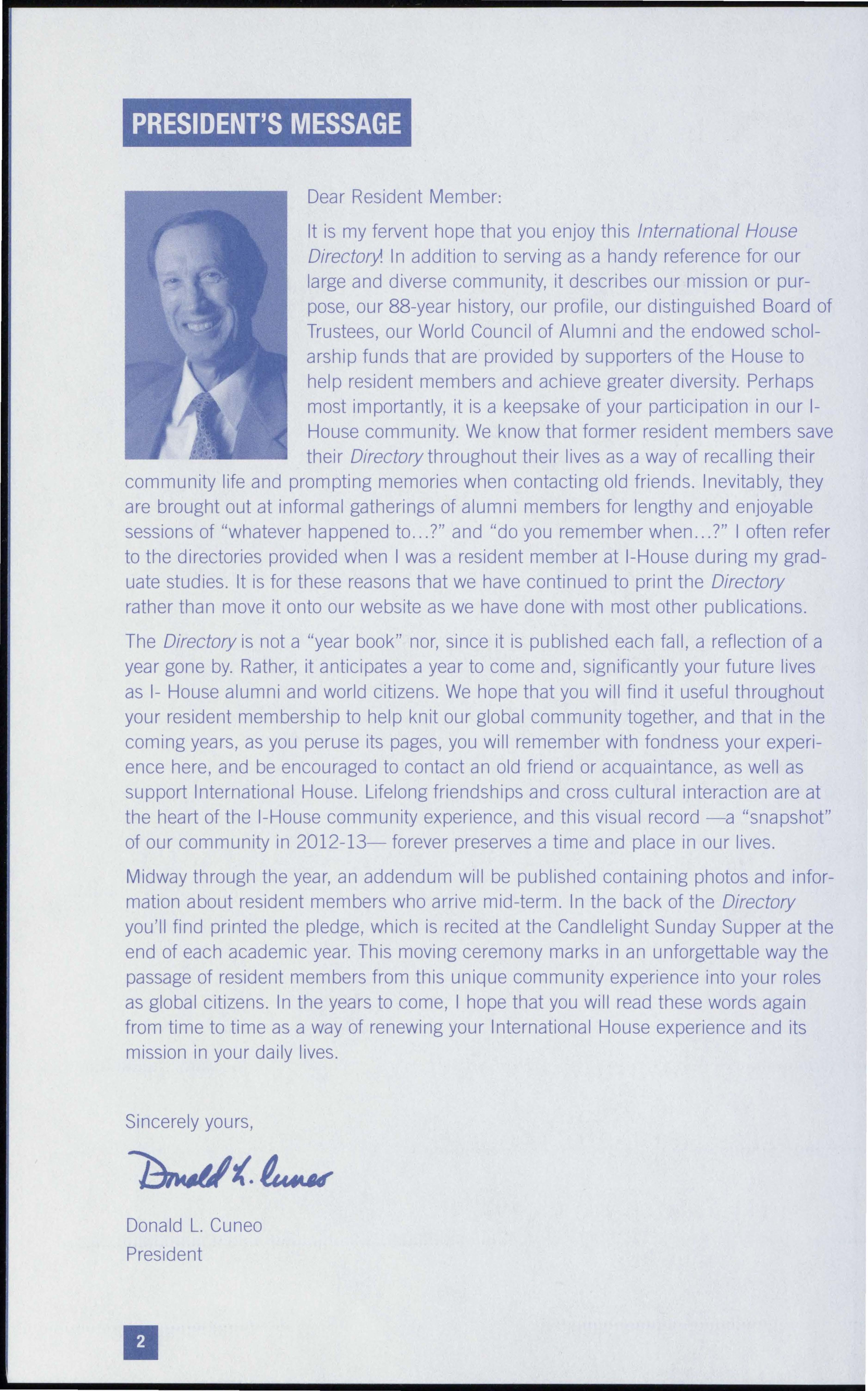 Whatever their area of interest or means of support, all those who contribute and donate to the International House are united by their strong belief in the value of the International House experience and its capacity to inspire cooperation, understanding and peace despite diversity.