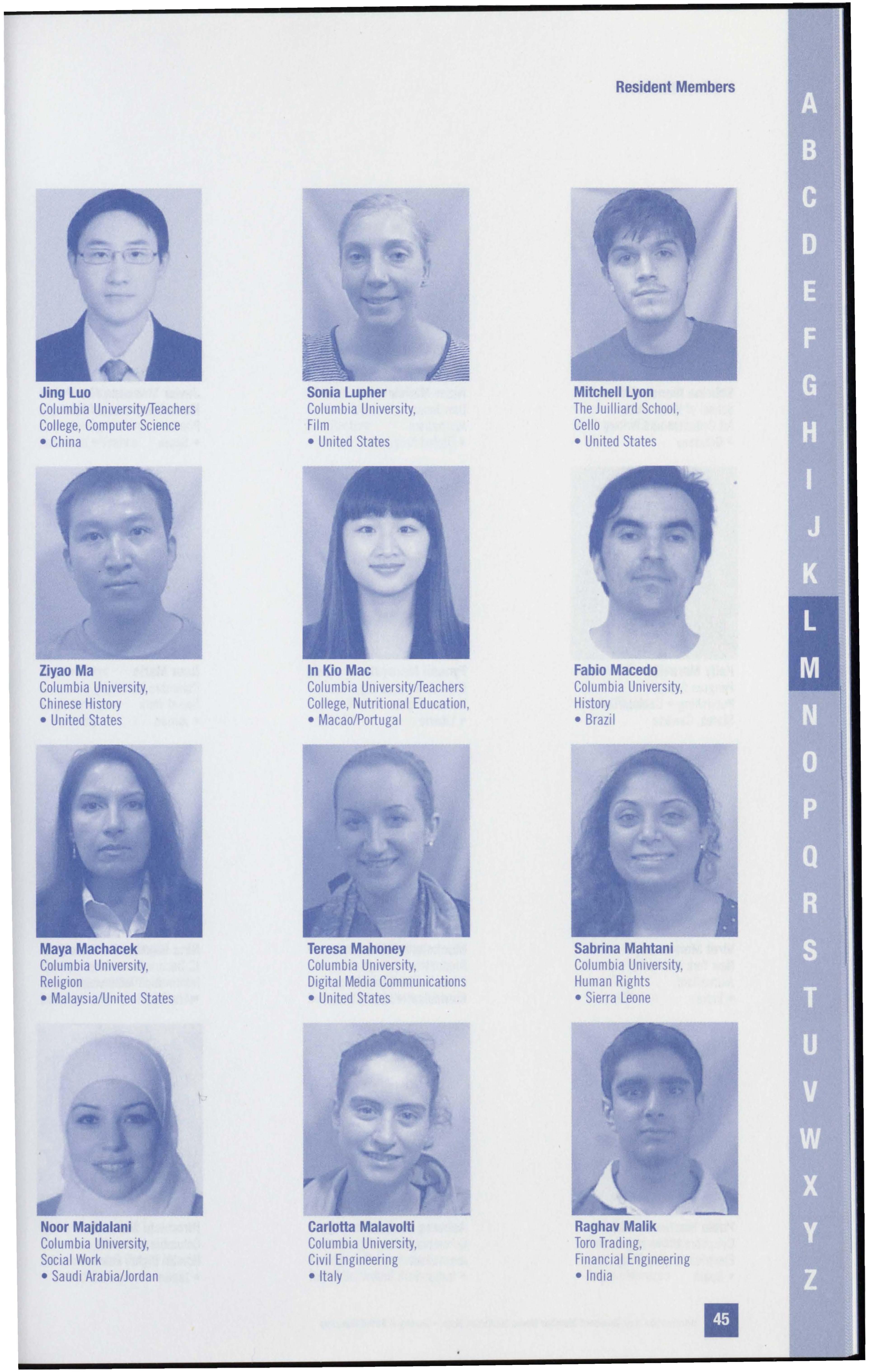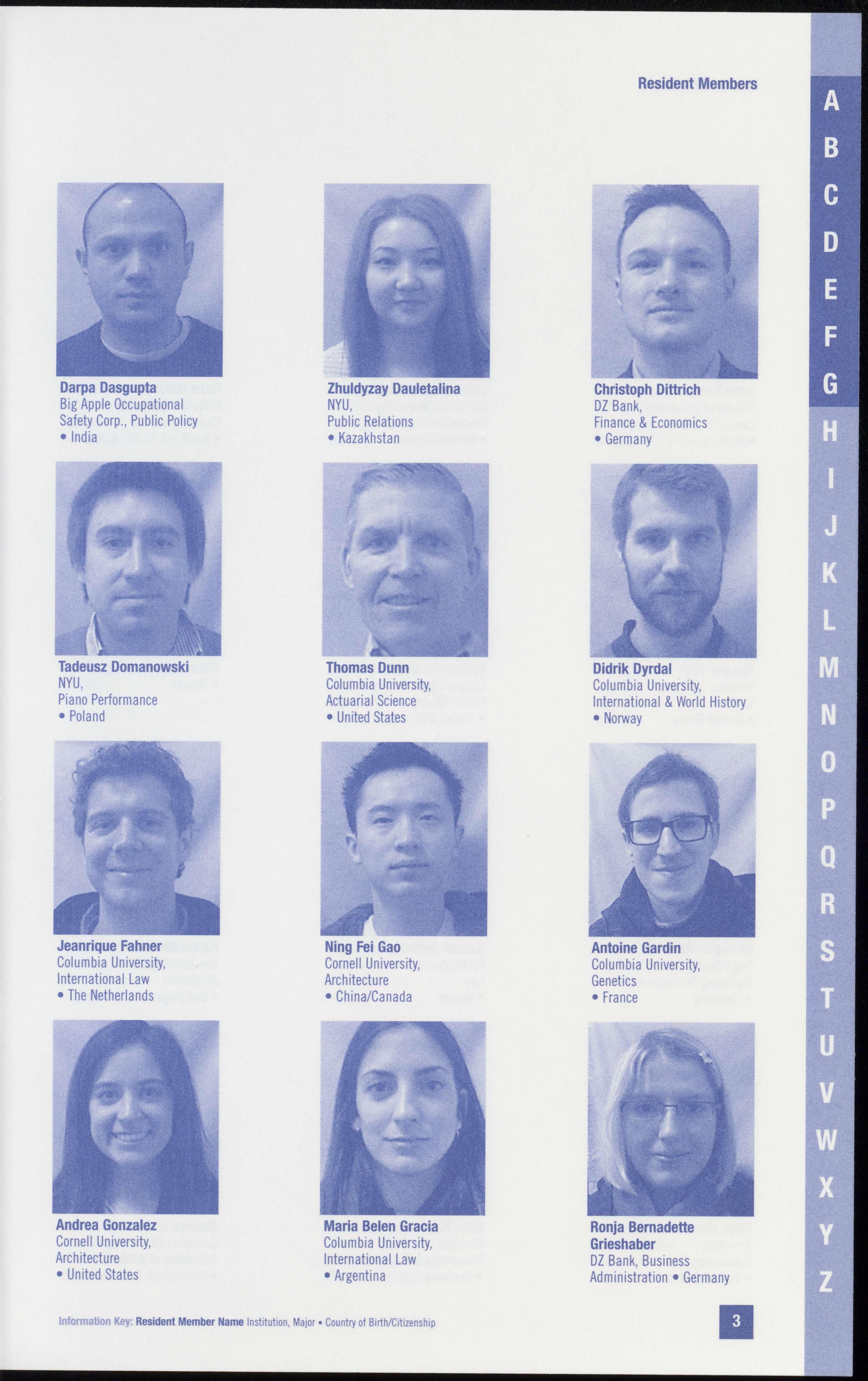 1111ormalior Key ResidentMemberNameInstitution,Ma101 • Countryof B1rth/C1t,zensh1p