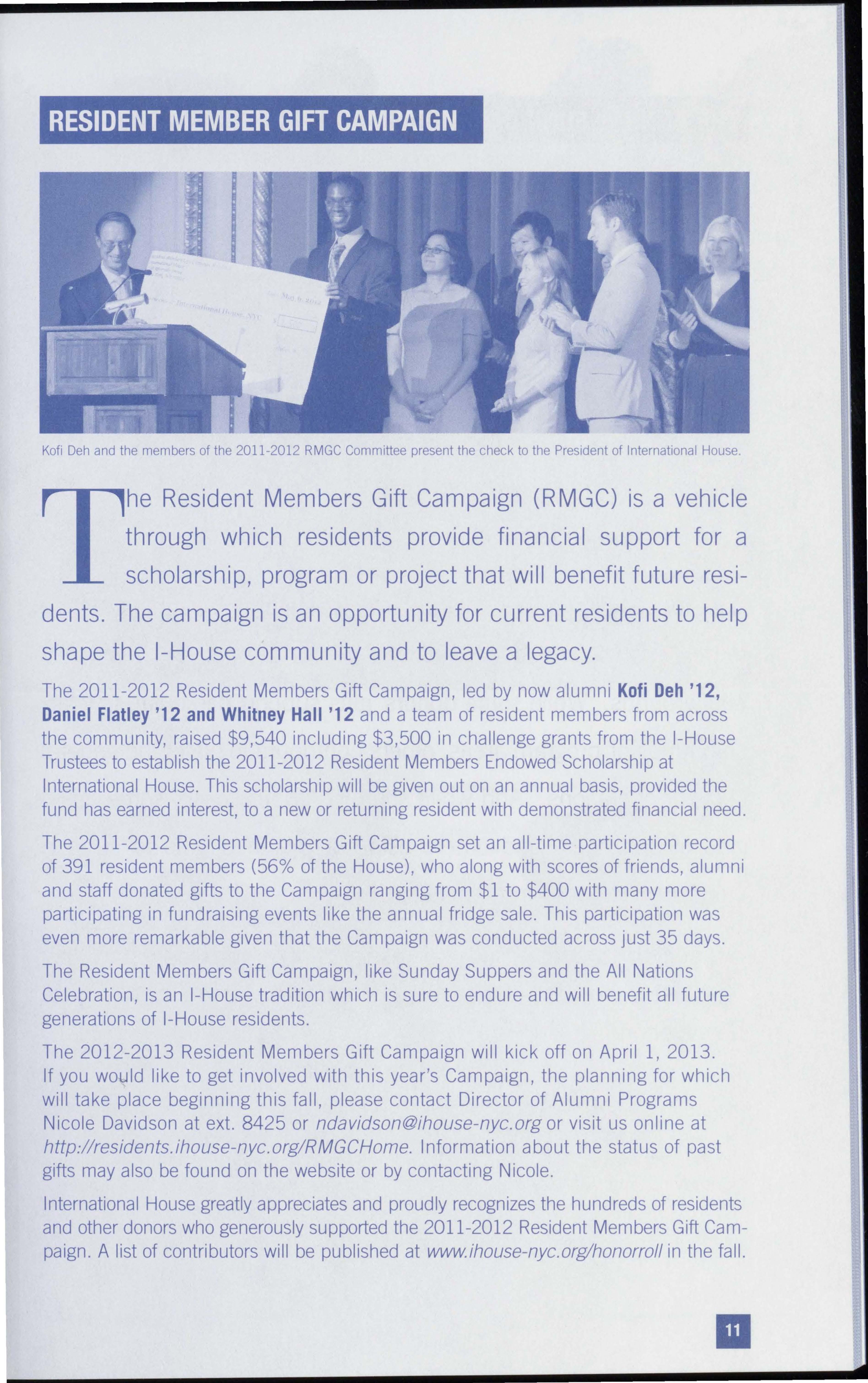 The International House Annual Fund Campaign is supported by the contributions of the network of alumni and friends comprising this unique community. The health of the House and its residents is buttressed by the support of these dedicated individuals, corporations and foundations. Contributions to the Annual Fund enable the House to subsidize the expenses of every resident member by about $2,500 and to provide $400,000 in scholarship and fellowship aid annually.