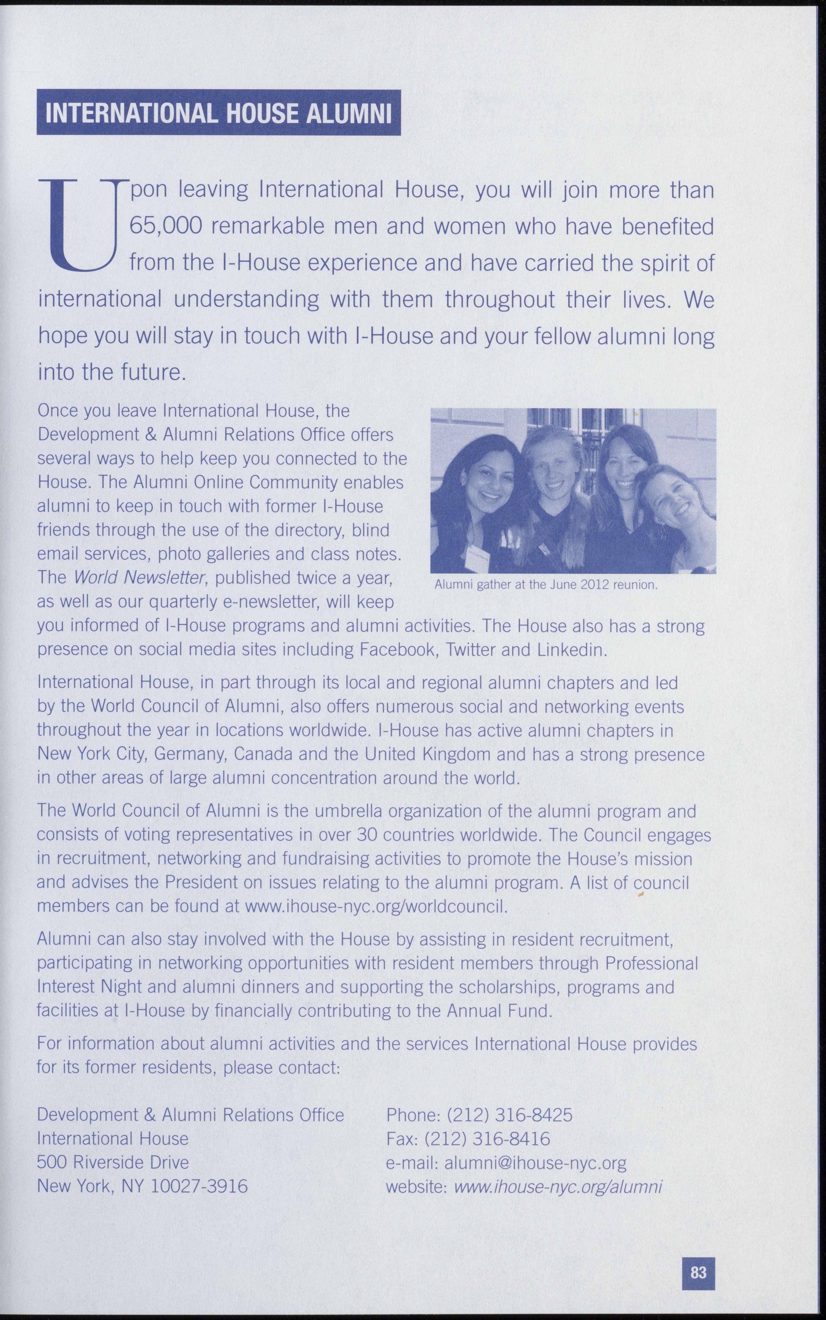 Contributions to the Annual Fund Campaign are made in as diverse forms, intents, and denominations as our alumni and residents' backgrounds. While some donors' gifts support particular scholarship funds or program areas, others contribute to offset the general costs of operations. And while some contribute cash, some make gifts of securities, and others establish planned gifts to support International House in perpetuity.