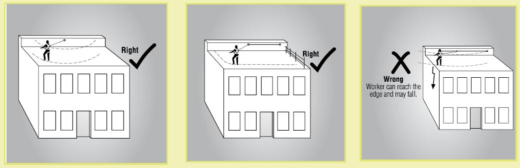 • Set and maintain the lanyard length to prevent the person from reaching the edge