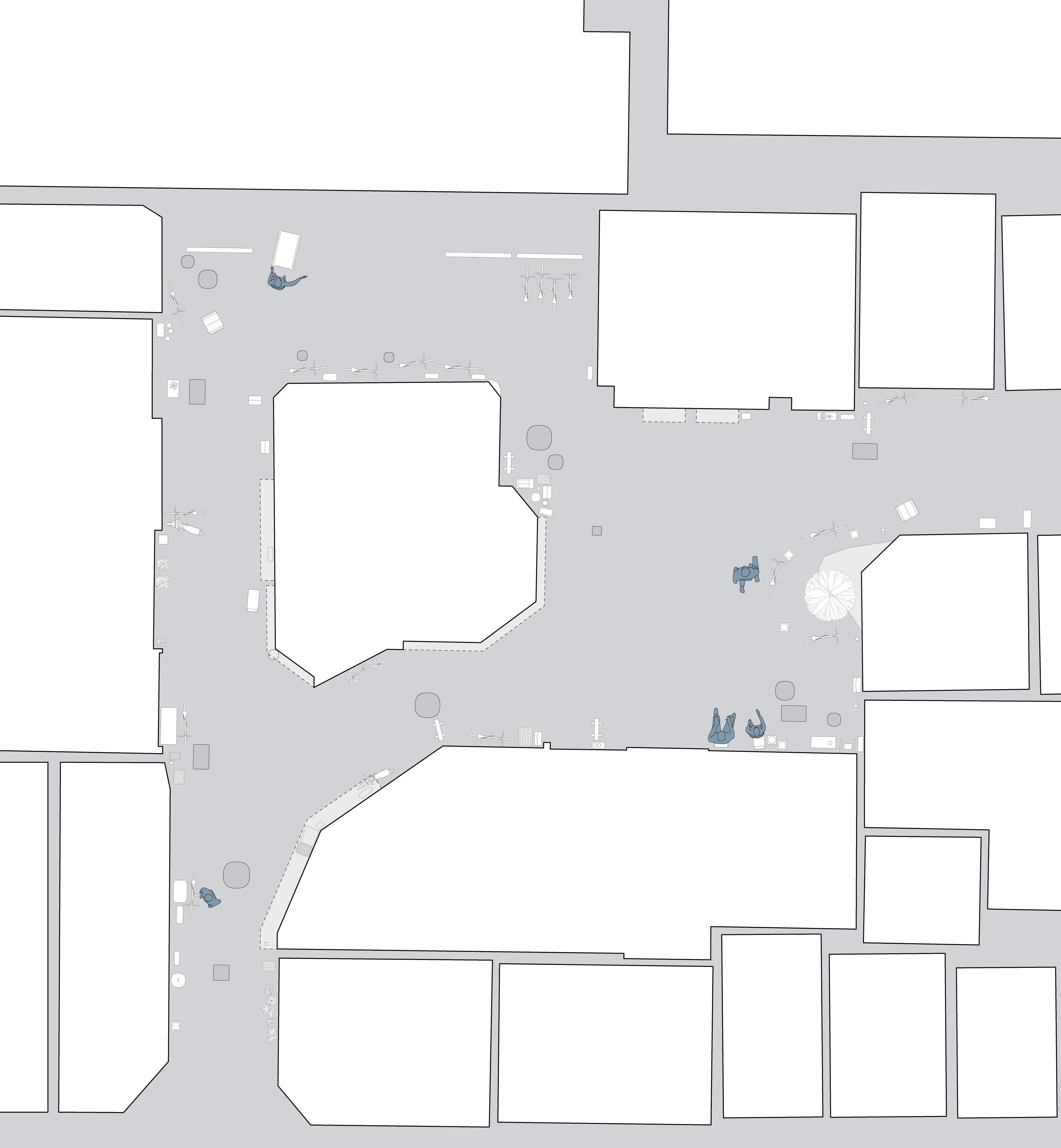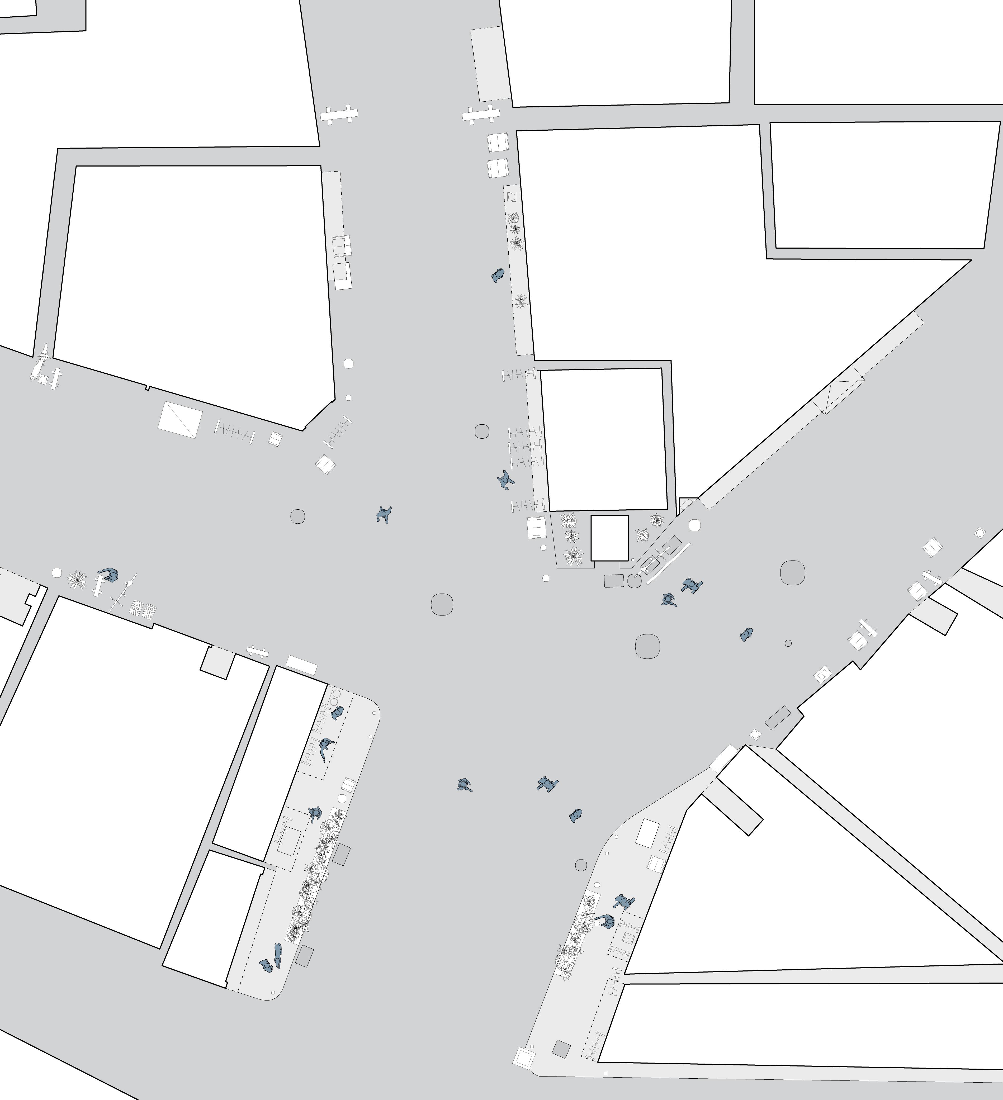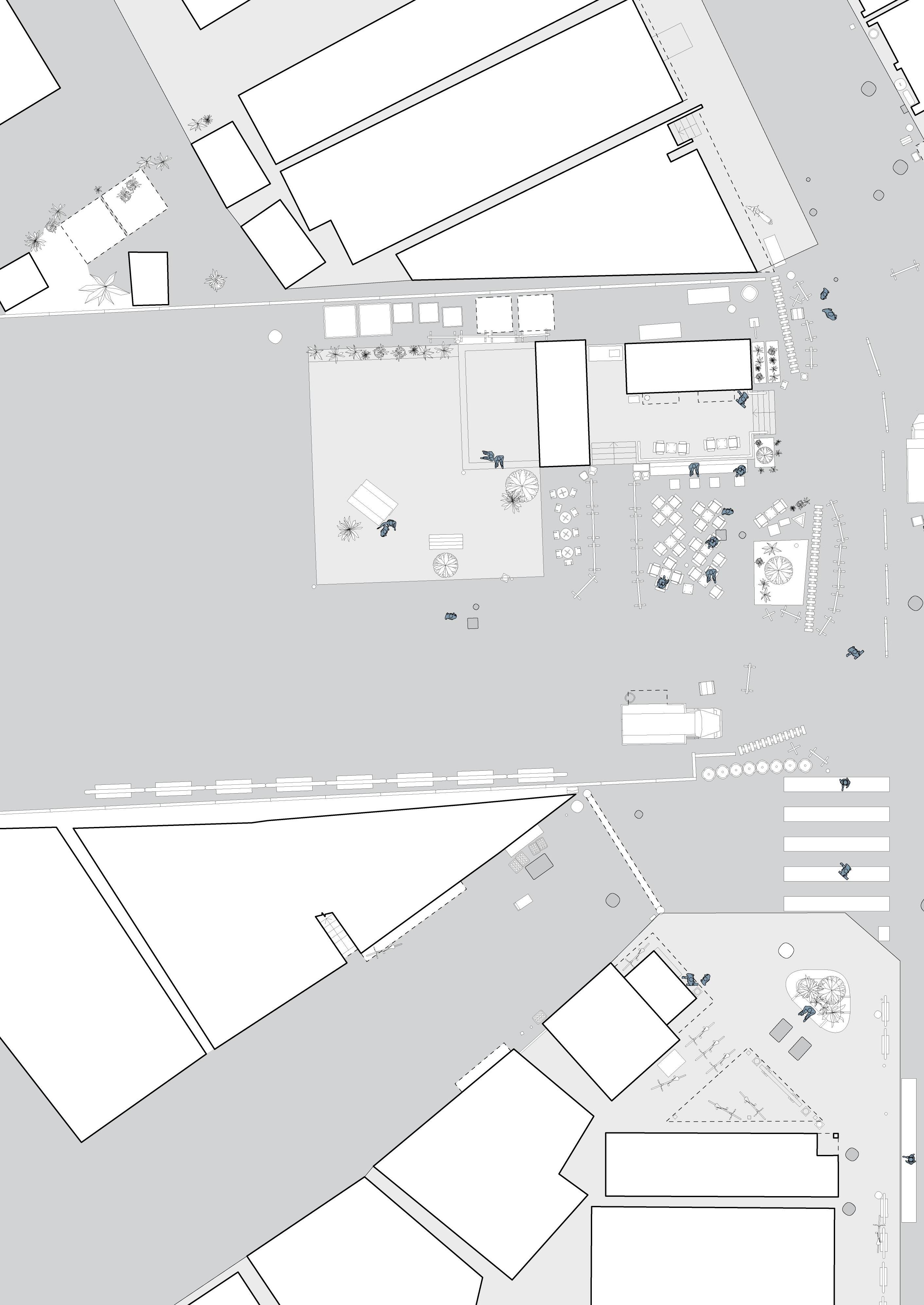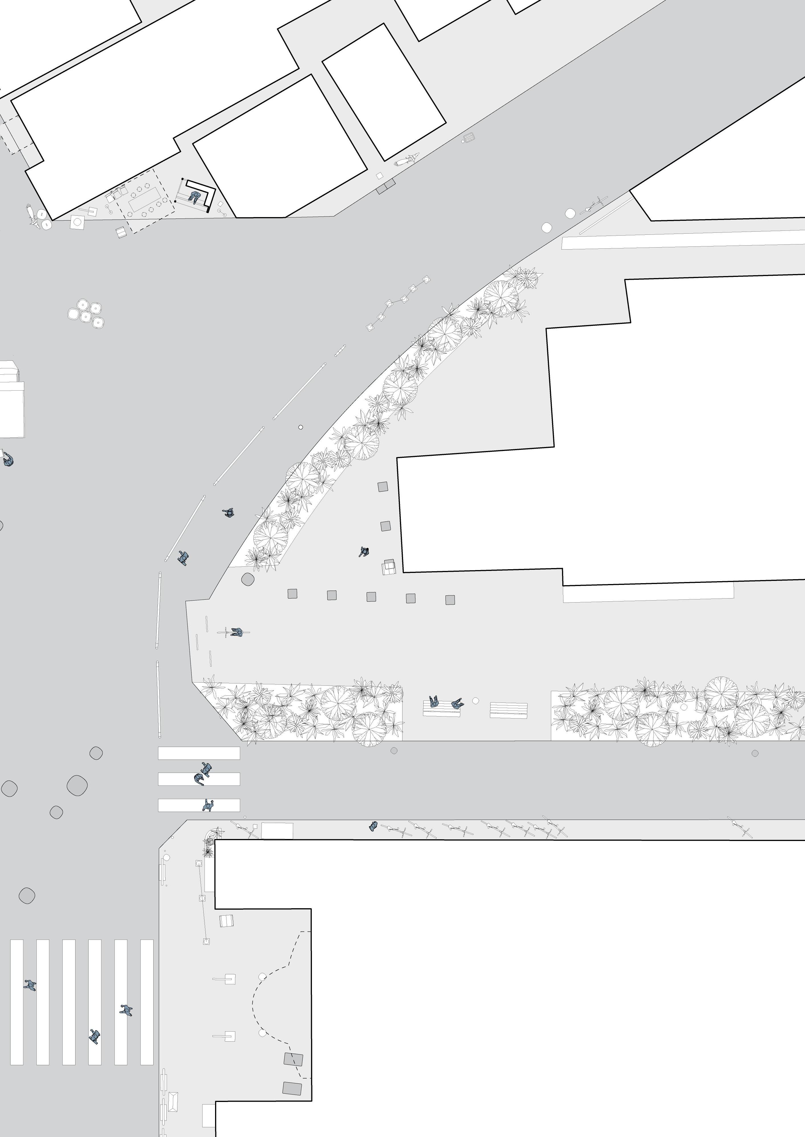 In the book Emergent Tokyo: Designing the Spontaneous City , Almazán and McReynolds note that “micro-scale choices and actions of its residents” shape urban cityscapes. [16] A documentation of street corners, crossroads, and open spaces can be a method to study how human-scale choices and interactions become typical and essential in the way people use the space. We have adapted our knowledge of architectural drawing to hopefully portray the messiness and informality of people utilising these spaces. By mapping out the physical objects in the spaces we investigate, we understand more than the rules and regulations that govern that space, but also the different possibilities that inhabitants can use the space for, whether rule-conforming or not. Through understanding these small to medium-scale spaces, we strive to understand the current “urban norm” within these cities.