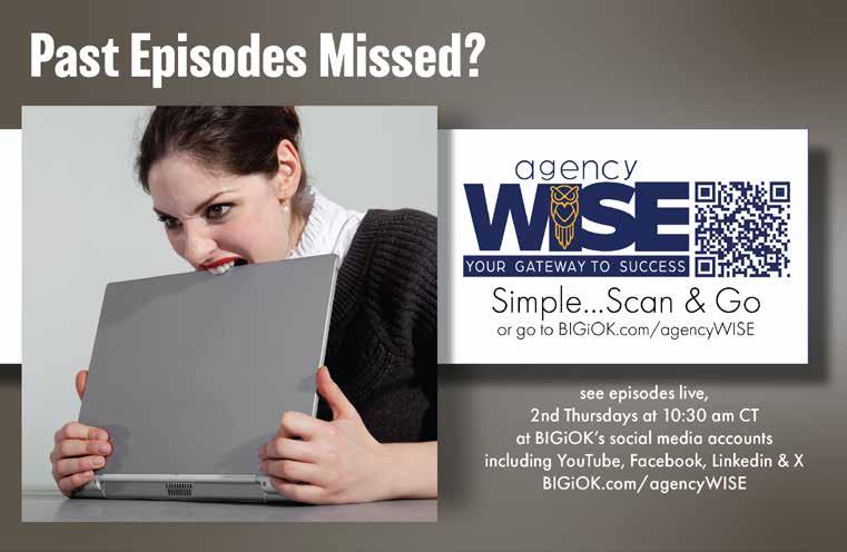 Already in 2024, we’ve had a perpetuation workshop, women’s conference, our annual conference and many classes, including podcasts and National Alliance events. If you haven’t had a chance to catch our monthly Agency Wise webinar podcast, be sure to put it on your calendar BIGiOK.com/ AgencyWISE