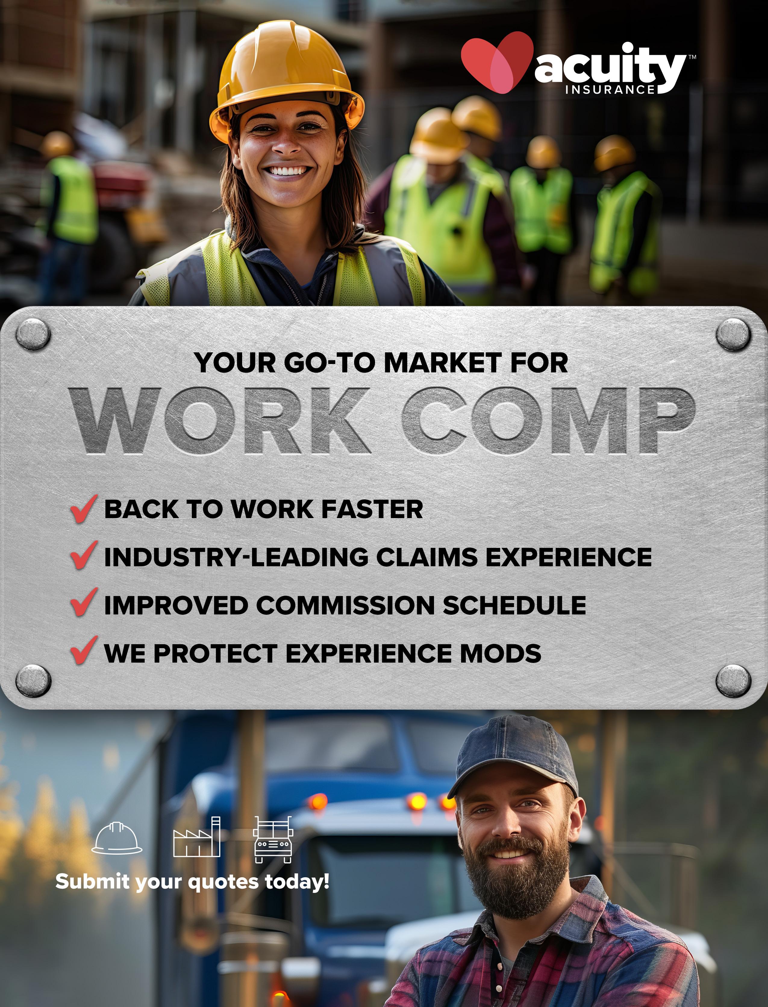 In workers' compensation, where stakes are high, don’t take chances with a secondrate carrier. Trust Acuity with your next work comp account.