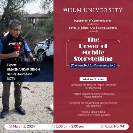 Mobile Storytelling by seasoned NDTV Journalist: Umashankar Singh: The focus of the lecture was the transformative power of mobile storytelling, shedding light on Singh's firsthand experiences and insights from his illustrious career.