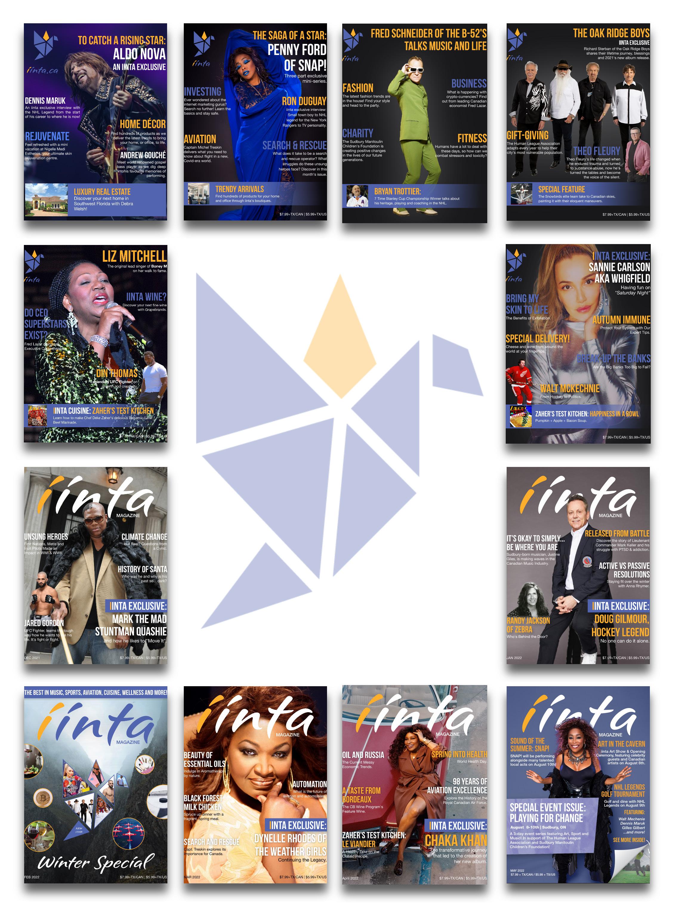 Our monthly release of iinta Magazine features renowned musicians and athletes, along with in-depth articles pertaining to literature, wellness, beauty, business, wine, and more!