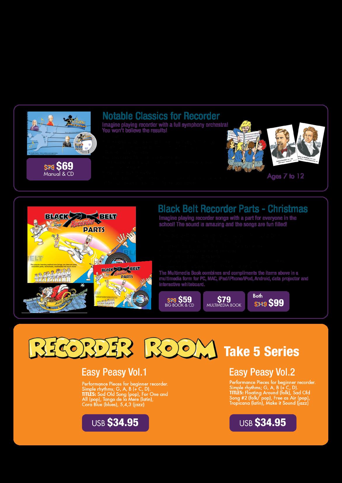 Beginner Book A - Recorder Edition or Beginner Book B - Treble Clef Theory. Include cartoons, puzzles & games, assessment pages and activities in full colour. Works well for classroom teachers or music specialists.