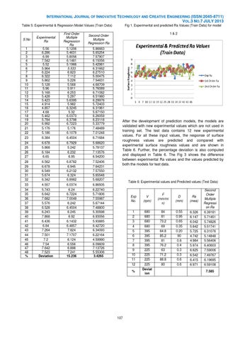 INTERNATIONAL JOURNAL OF INNOVATIVE TECHNOLOGY AND CREATIVE ENGINEERING (ISSN:2045-8711) VOL.3 NO.7 JULY 2013 Table 5: Experimental & Regression Model Values (Train Data)