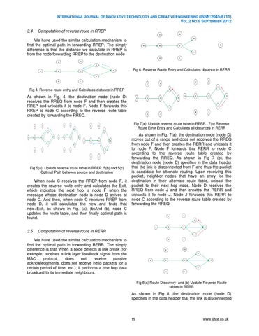 As shown in Fig. 4, the destination node (node D) receives the RREQ from node F and then creates the RREP and unicasts it to node F. Node F forwards this RREP to node C according to the reverse route table created by forwarding the RREQ. Fig 7(a): Update reverse route table in RERR. 7(b) Reverse Route Error Entry and Calculates all distances in RERR