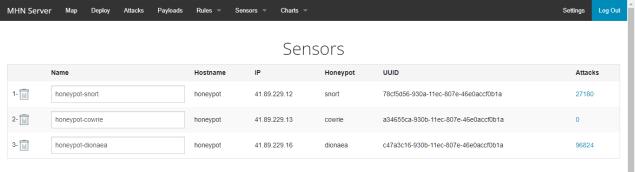 A Proxmox virtual environment was set up to host Modern Honey Net (MHN) server, snort, firewall, dionaea and cowrie virtual machines. Proxmox VE is complete open source server platforms for enterprise virtualization which help cut costs for IT departments and add server stability and efficiency. To install Proxmox Virtual Environment; we downloaded Proxmox ISO Image, prepared the Installation Medium, Launched the installer and ran Proxmox. Second VMs were created by uploading an ISO image which contained ubuntu-18.04-server to Proxmox VE. The VMs were created in Proxmox VE where the hard disk storage space, the number of cores and the RAM size of the VMs were defined. Lastly the OS was installed in the virtual machines. The experiment was carried out for two weeks in a controlled environment. All the alerts from the sensors were collected in the MHN server. Figure 1 shows a virtualised MHN server.
