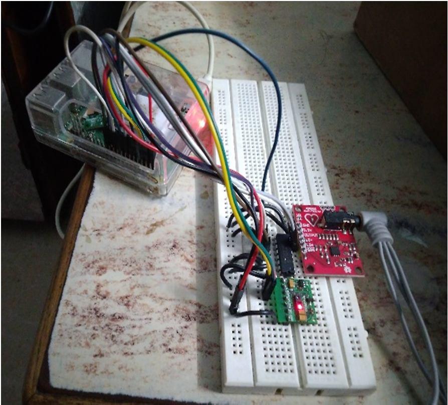 One of the challenges faced using the AD8232 sensor is to keep the Raspberry Pi reading the signal when the ECG pulse is detected by the sensor and related to the SBC. The AD8232 sensor is an analog sensor with no buffer to store data. This was problematic during the first implementation of the system when the inputs from the sensors would be taken and uploaded to the cloud in a cyclic order one at a time. This led to a loss of data from both sensors. This problem is overcome using multithreading on the Raspberry Pi. Three threads are created, the first one for reading the AD8232 sensor, the second for reading the MAX30100 sensor, and the third thread for managing all other tasks and uploading all the data. The data from the sensors is then stored inside a global array which is accessible to all the threads.