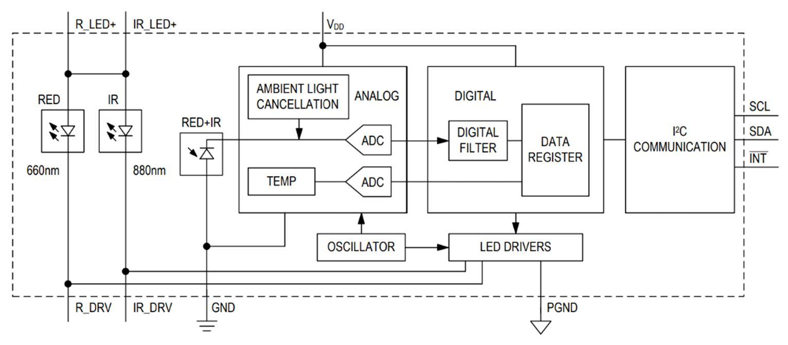 Fig. 1 Block diagram of MAX30100 pulse oximeter sensor