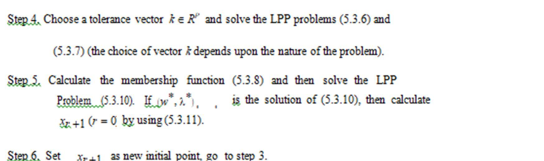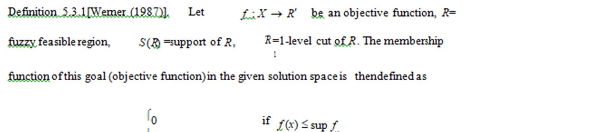 Here, we shall present a model that is particularly suitable for the type of linear programming model (5.3.4) in fuzzy environment which seem to have some advantages [Werners (1987)]. Werner (1987) suggested the following definition.